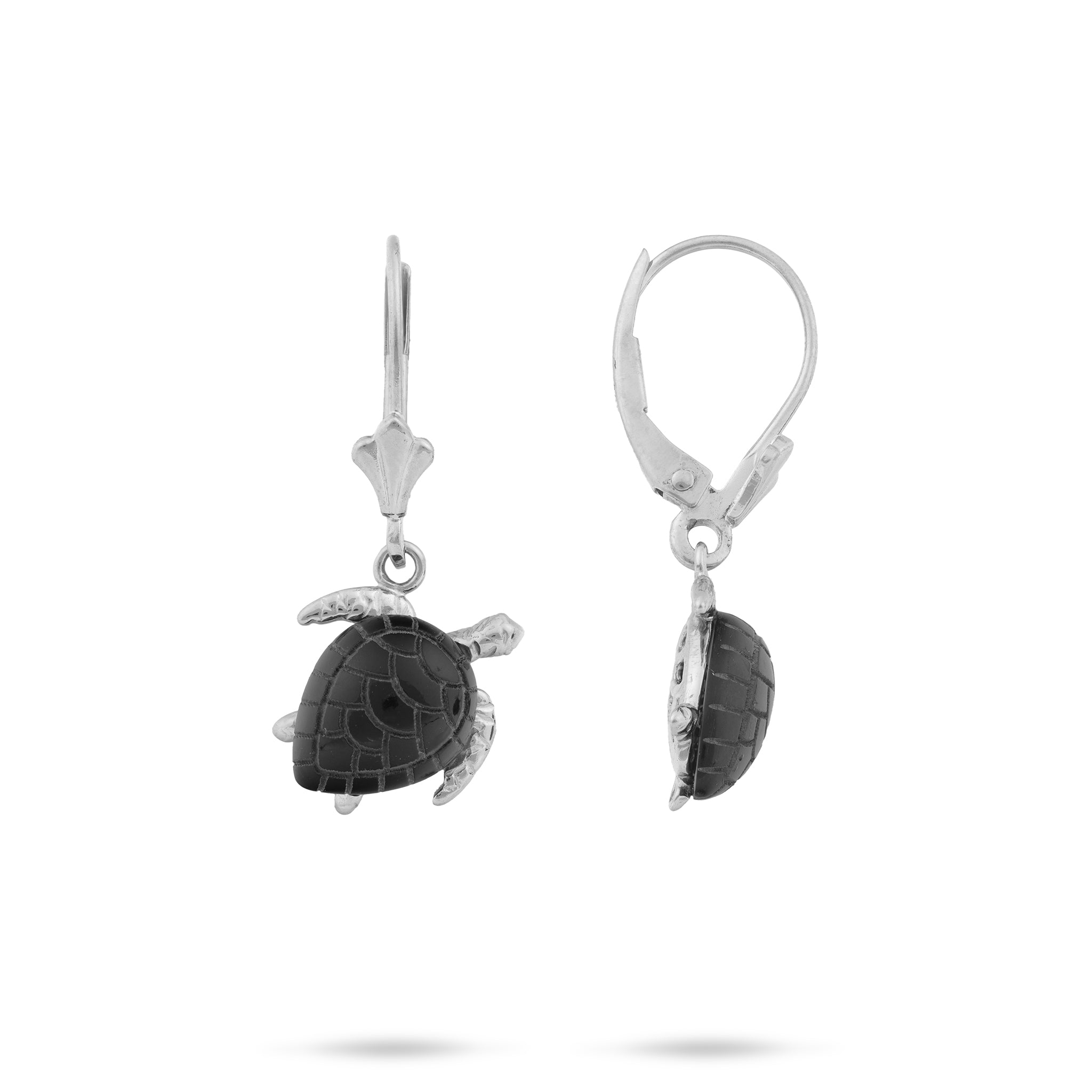 Honu Black Coral Earrings in White Gold - 11mm