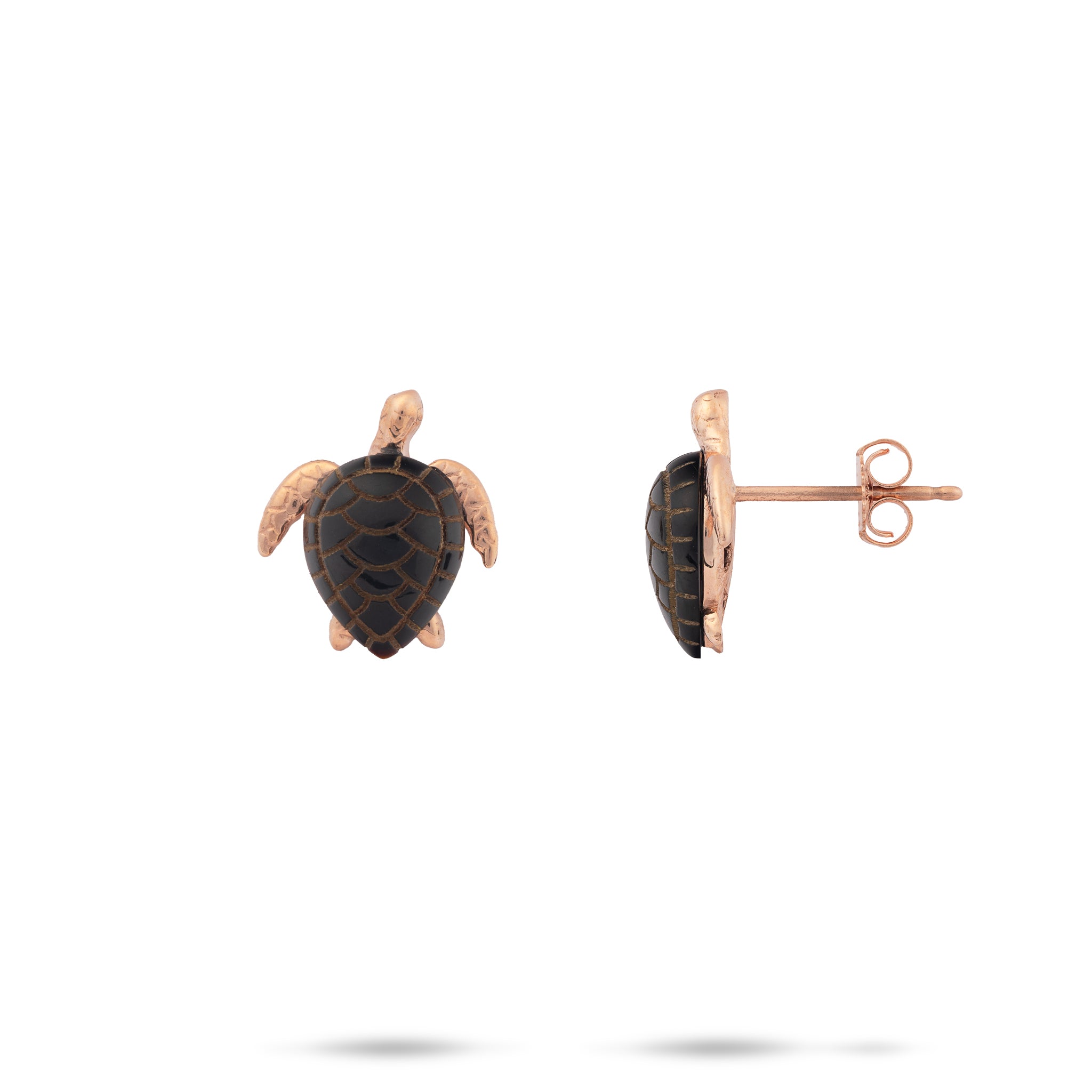 Honu Black Coral Earrings in Rose Gold - 11mm