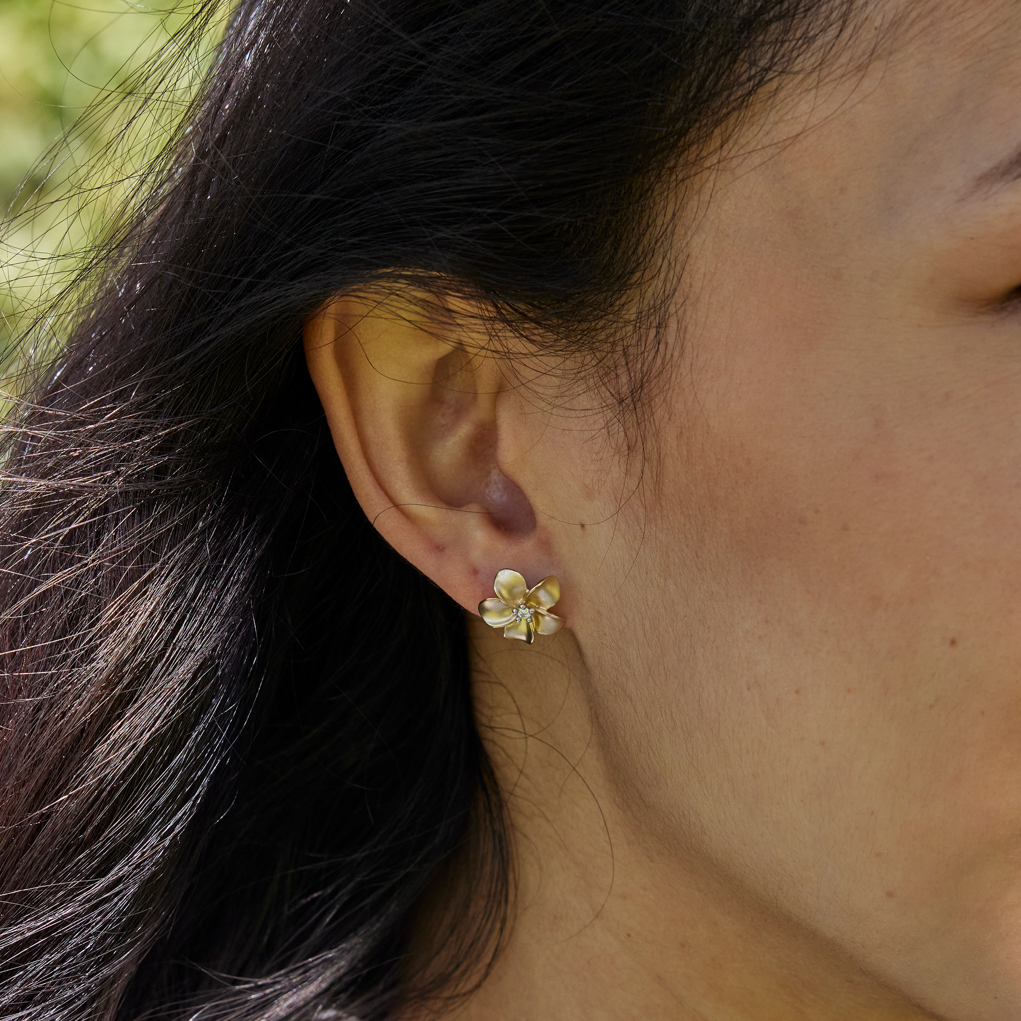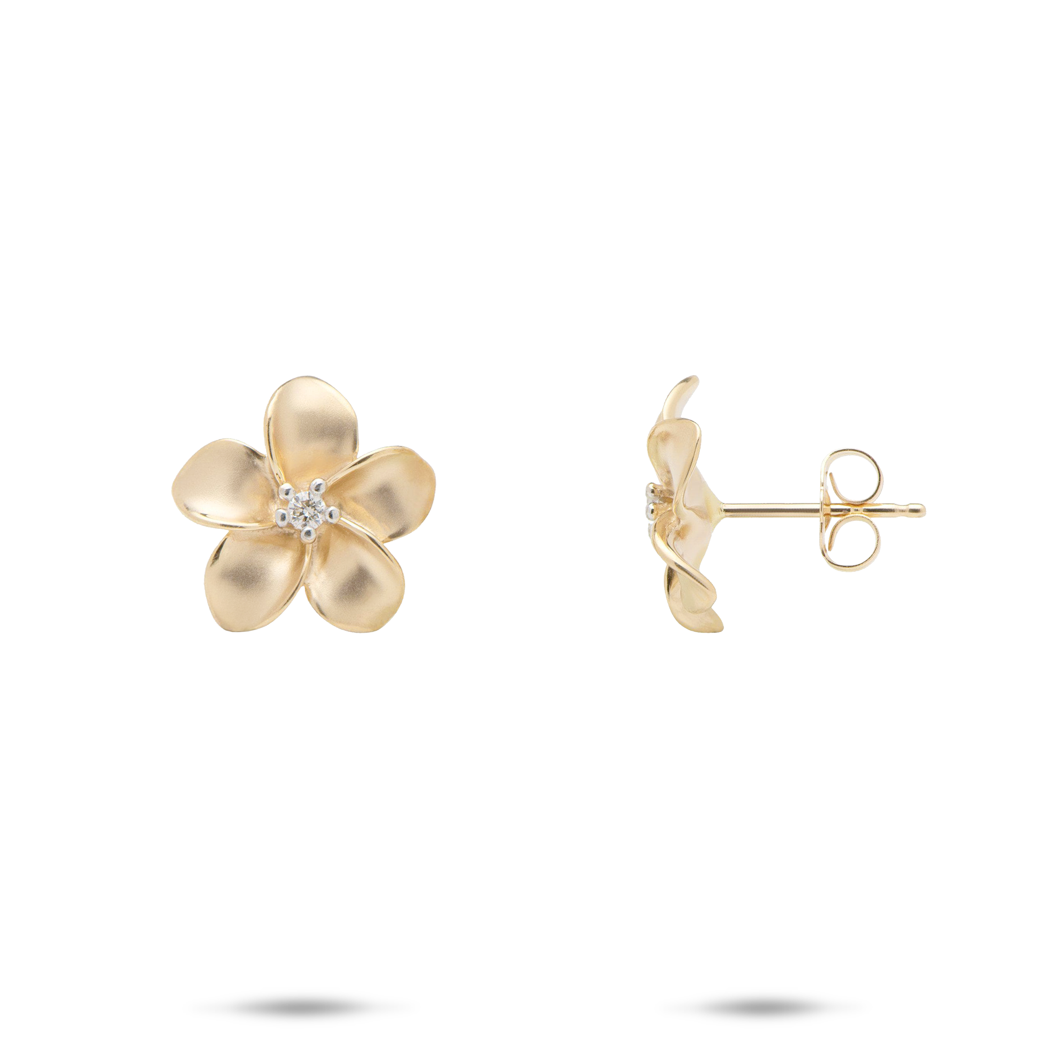 プルメリア ダイヤモンド ピアス ゴールド - 13mm