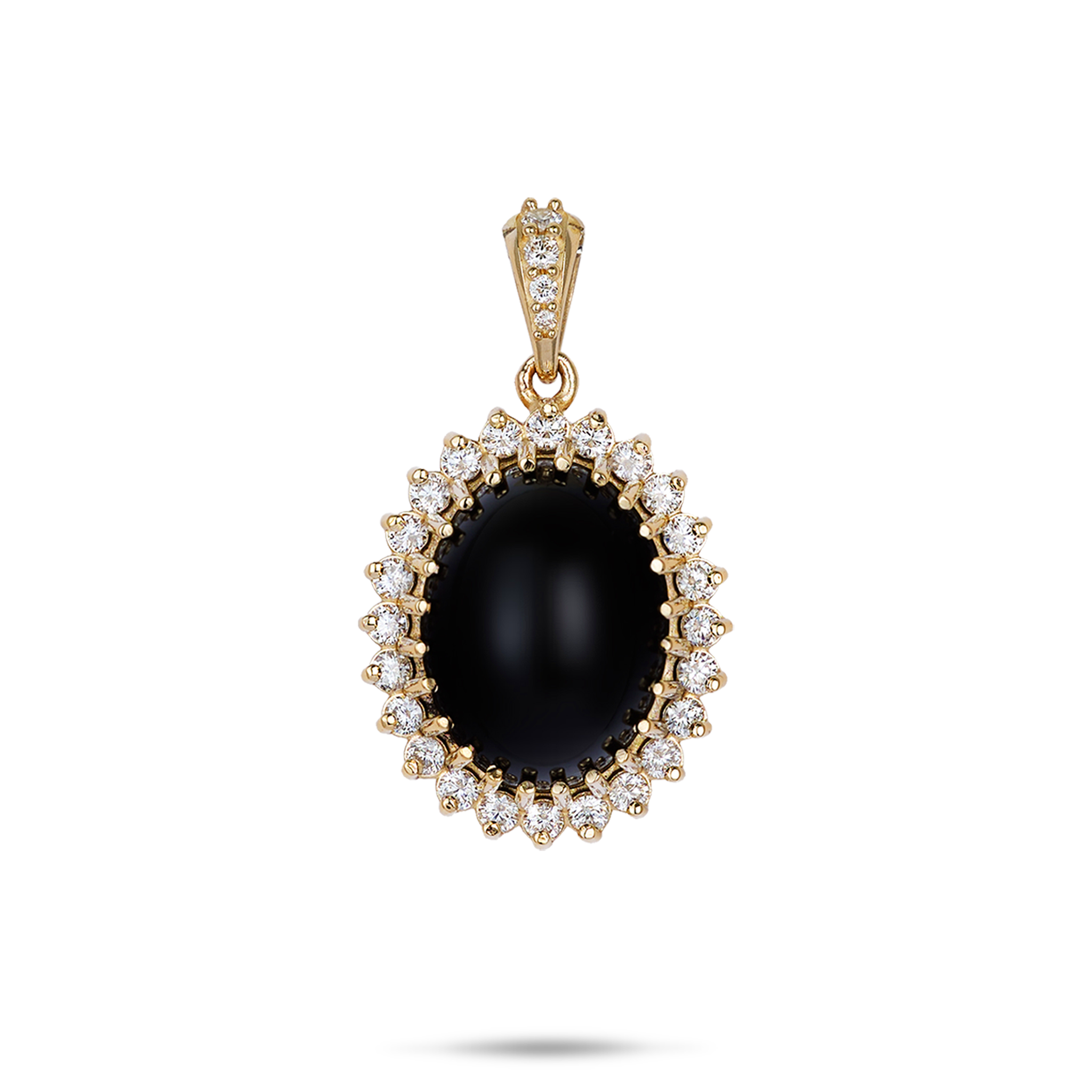 Princess Ka‘iulani Black Coral Pendant in Gold with Diamonds - 21.5mm