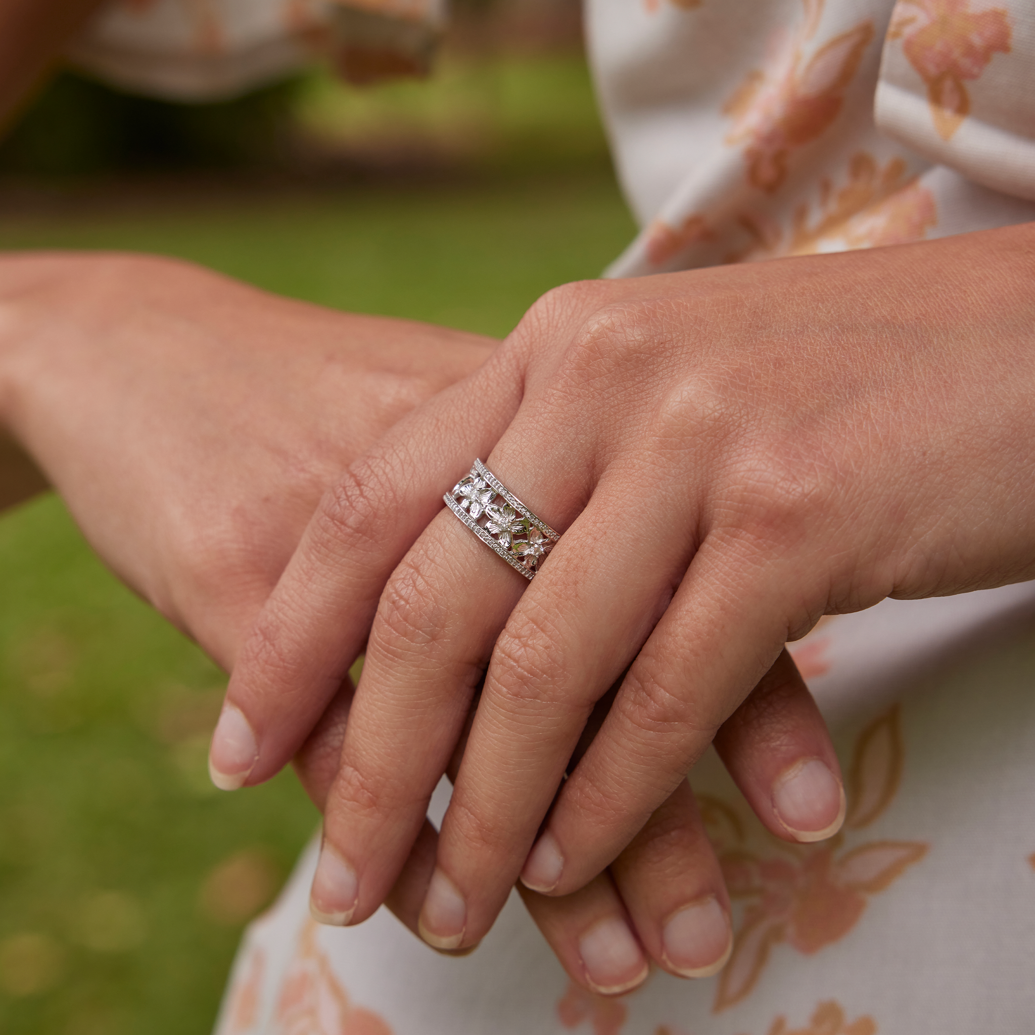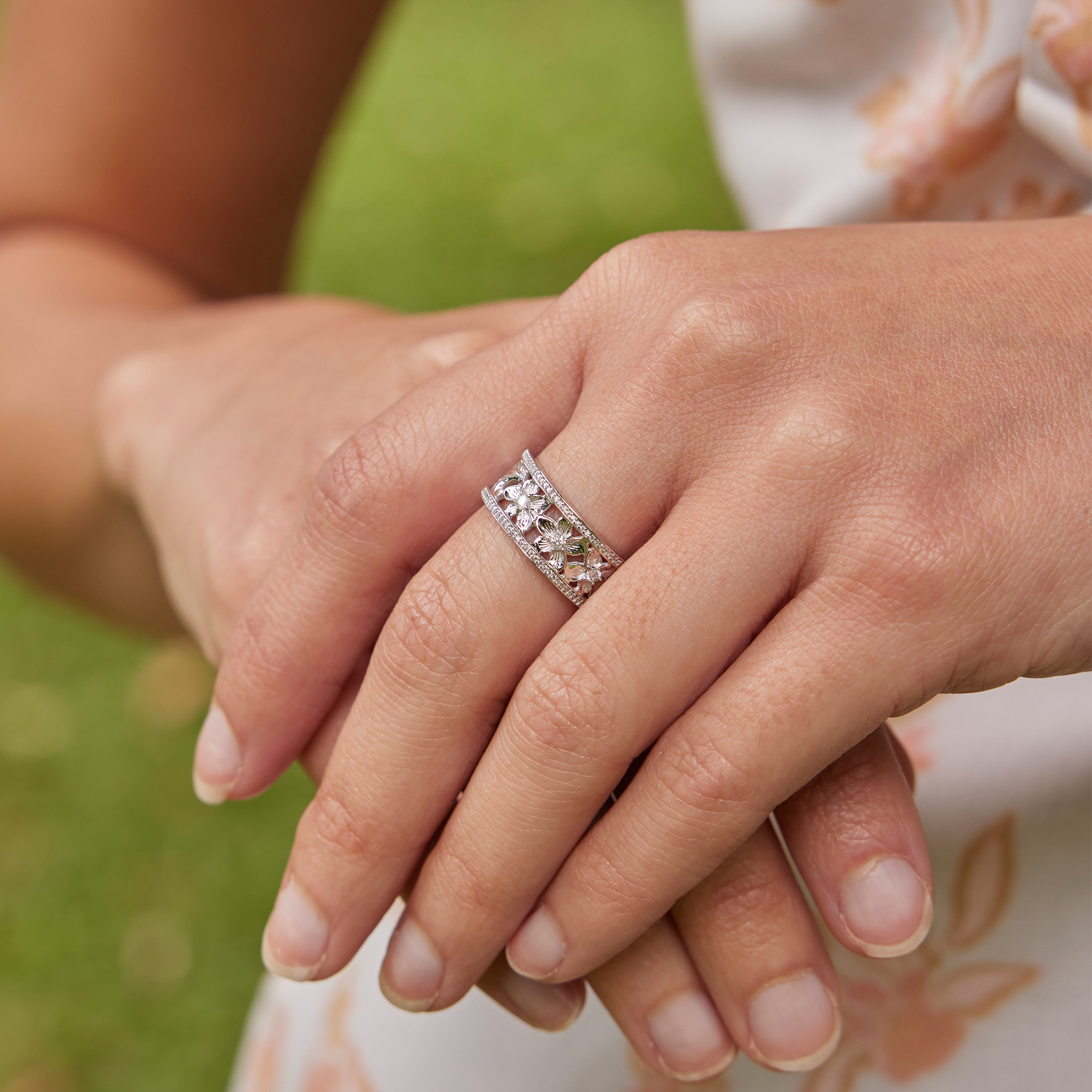 ハワイアン・エアルームプルメリア ダイヤモンド ホワイトゴールド - 8mm