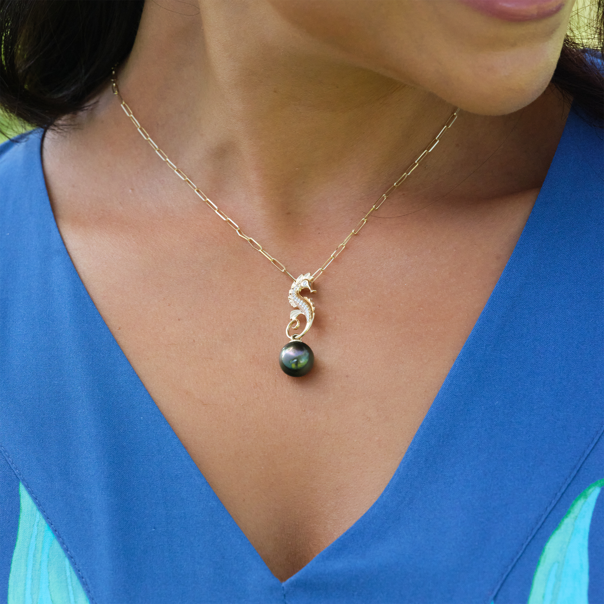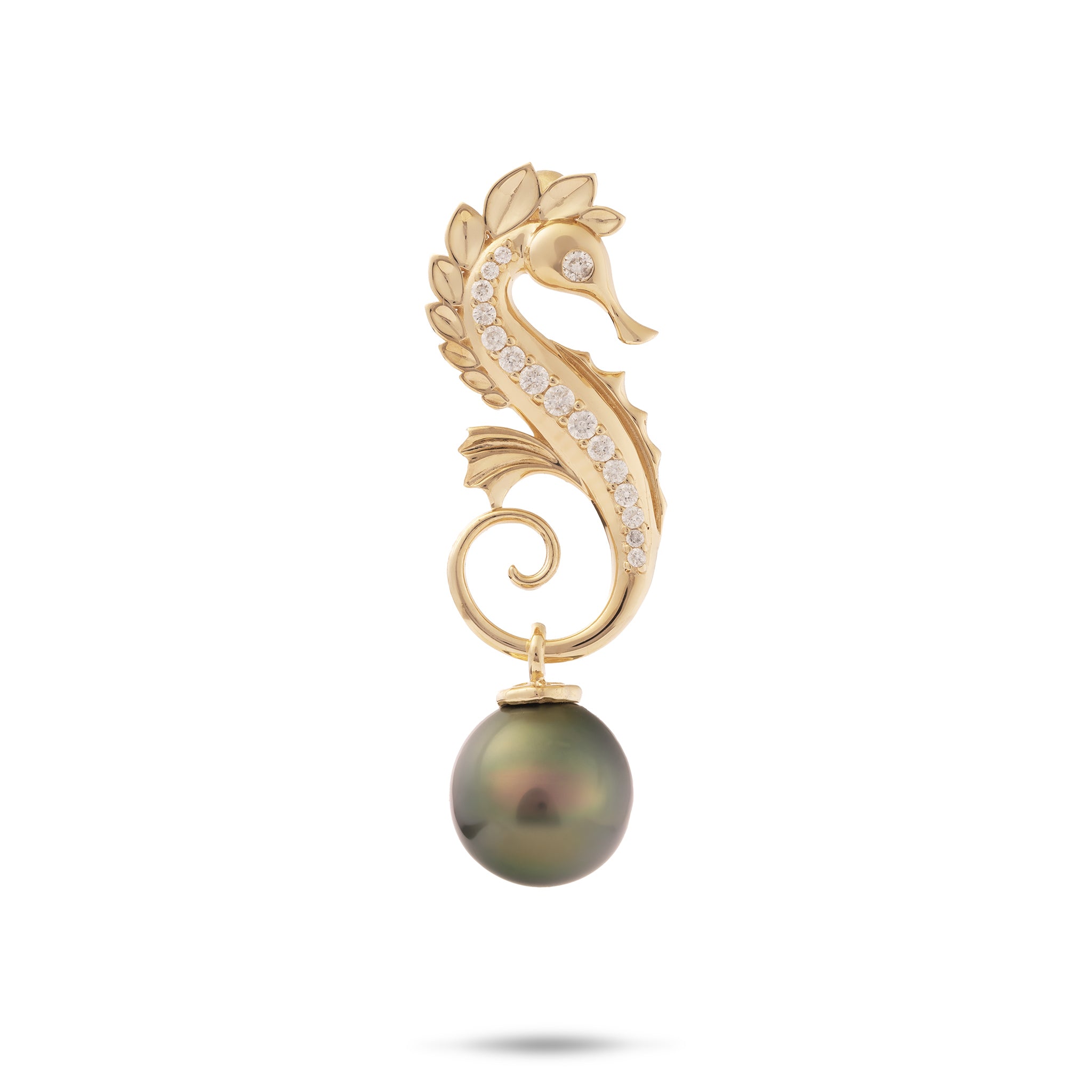 オーシャンダンス シーホース タヒチアンブラックパール ペンダント ダイヤモンド ゴールド 9-10mm