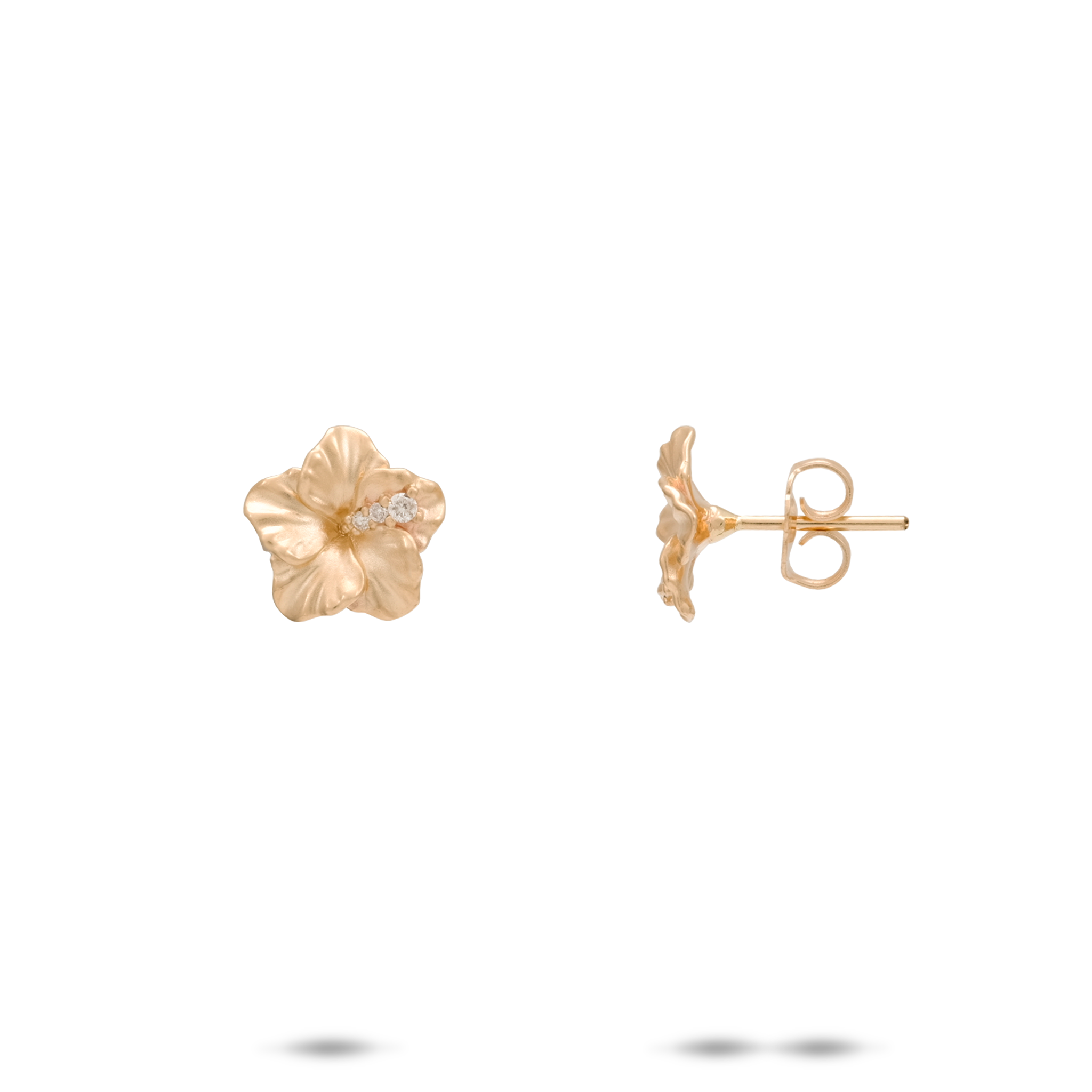 ハワイアン ガーデンズ ハイビスカス ピアス ダイヤモンド ゴールド - 9.5mm
