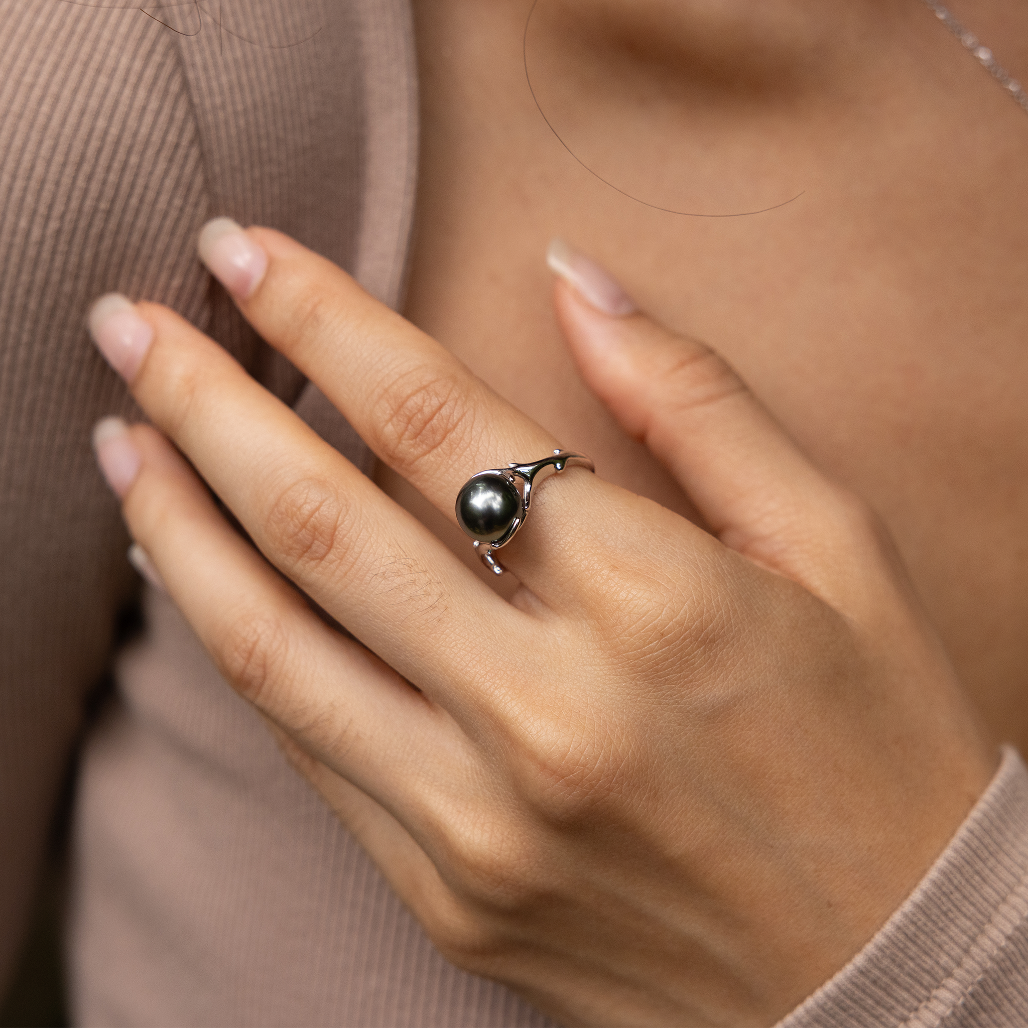 ヘリテージ タヒチアン ブラック パール リング ホワイトゴールド - 9-10mm