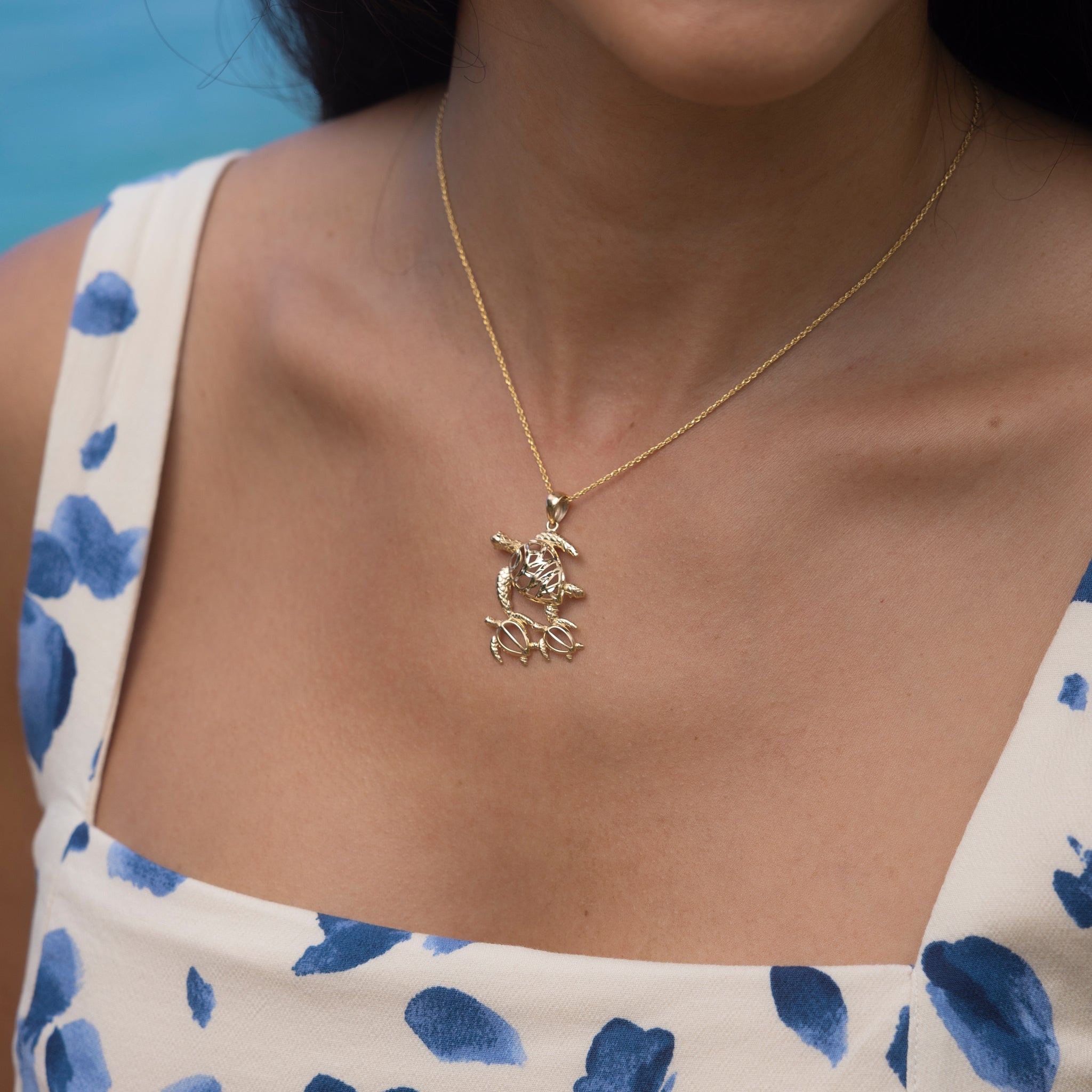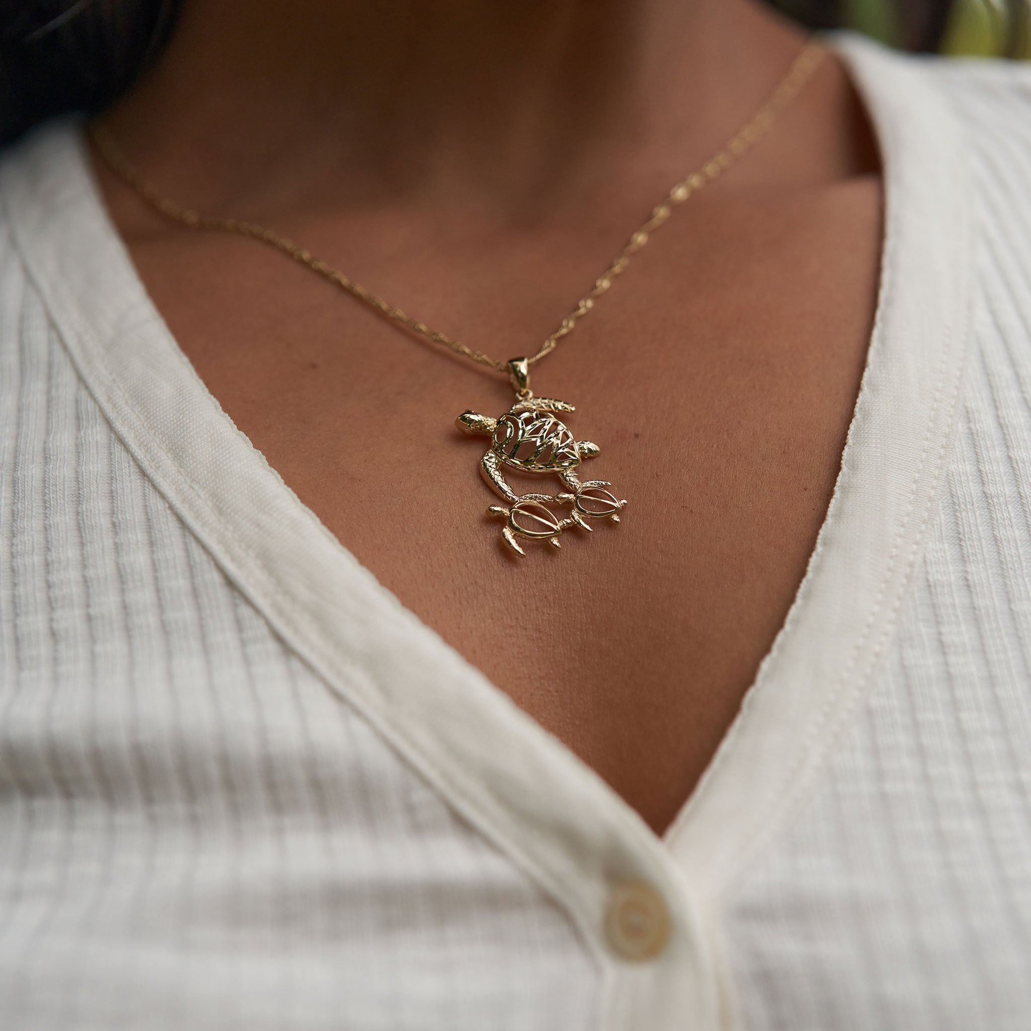 ホヌ オハナ(家族)ペンダント ゴールド - 25mm