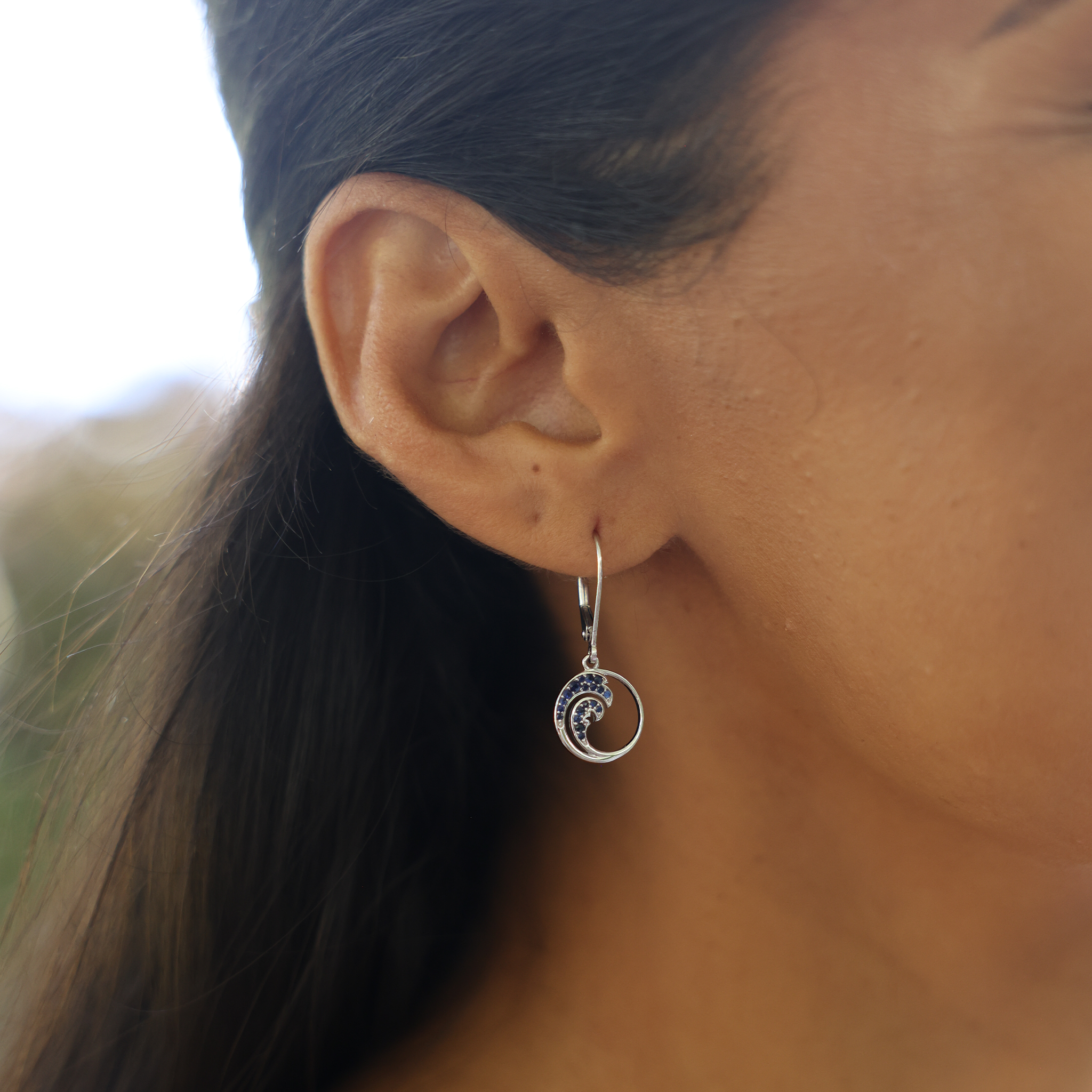 The Nalu (Wave) Collection captures the essence of Hawaiian waves, created so that their beauty, power and grace are everlasting. Feel the rush of the waves with sparkling blue sapphire waves against solid 14k white gold.