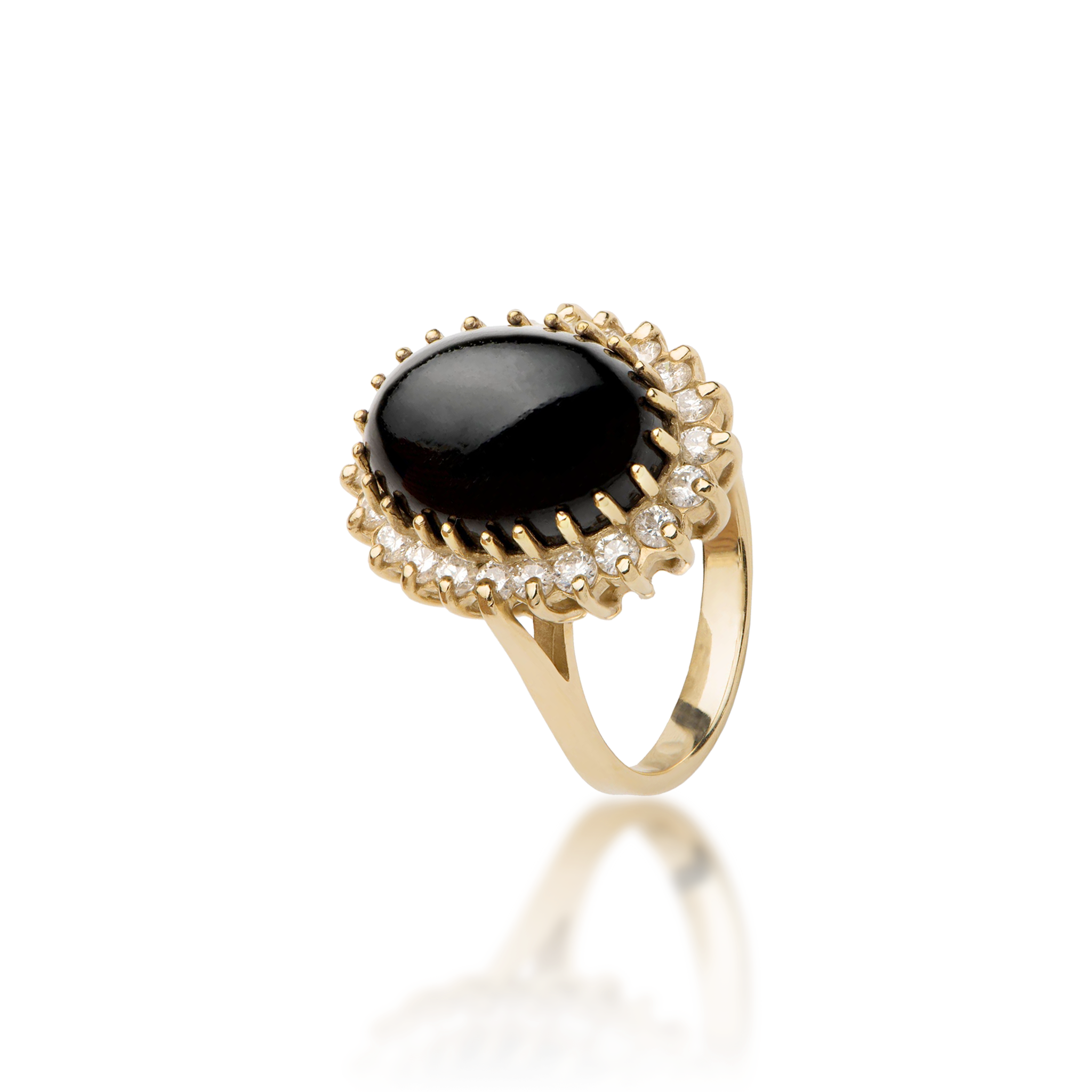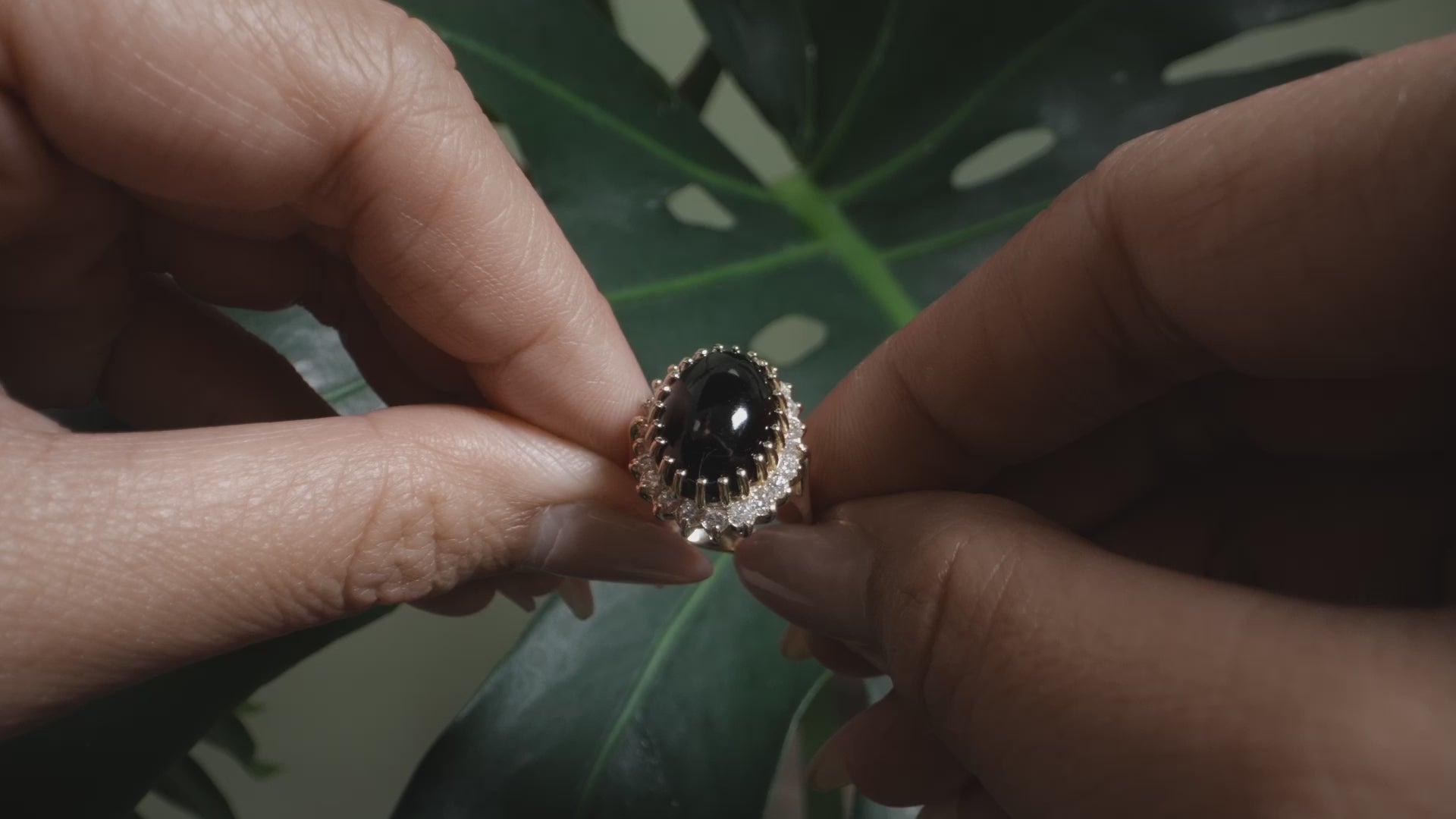 Princess Ka‘iulani Black Coral Ring in Gold with Diamonds - 18.5mm