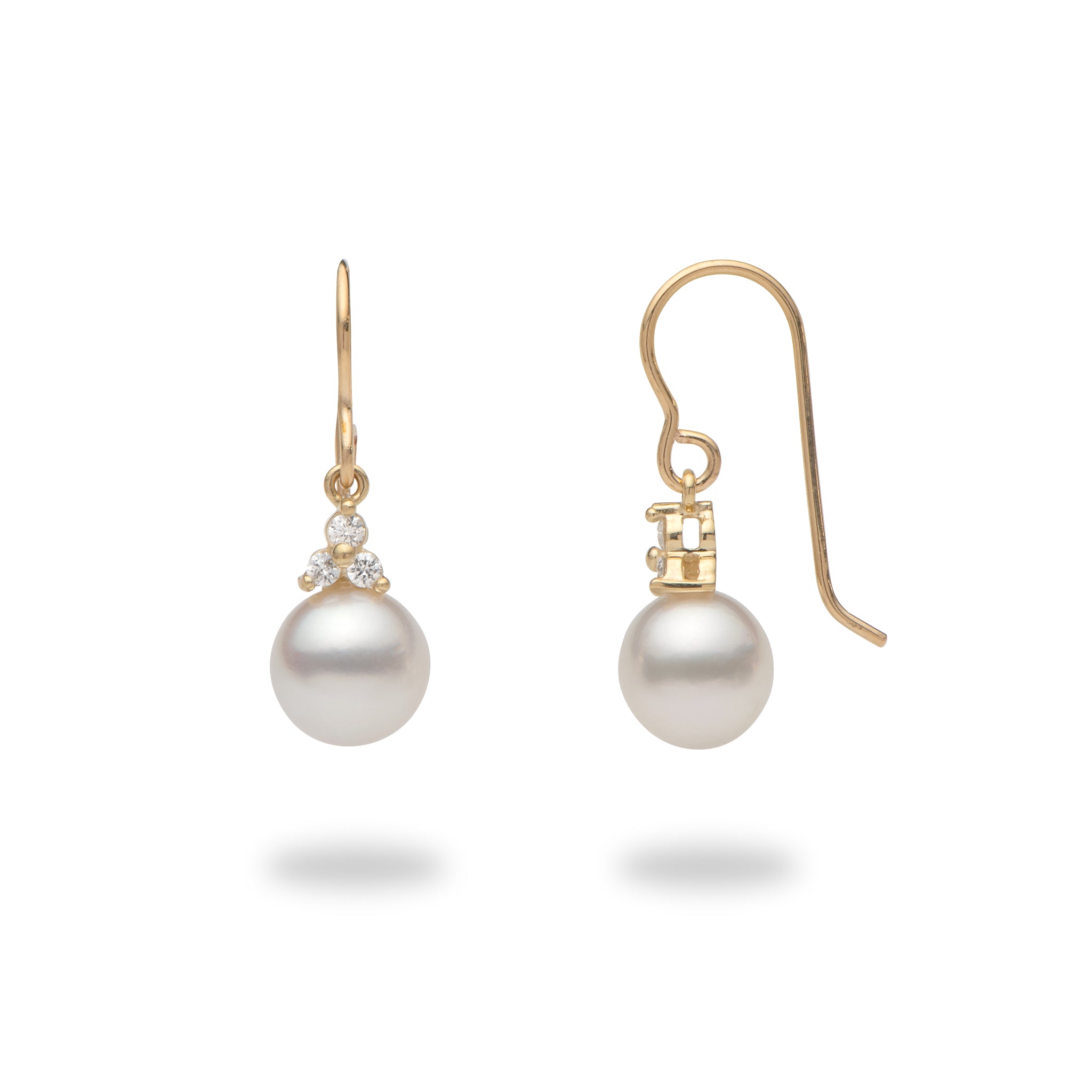 エレガントな南洋白蝶真珠のピアスで、あなたのスタイルをより一層引き立てましょう!天然ダイヤモンドをあしらったこのクラシックなイヤリングには、8~9mmの南洋白蝶真珠が贅沢にあしらわれ、14Kイエローゴールドの時代を超越したシェパードフックのデザインで留められています。14Kイエローゴールドのシェファーズフックデザインで、どんな装いにもマッチします。