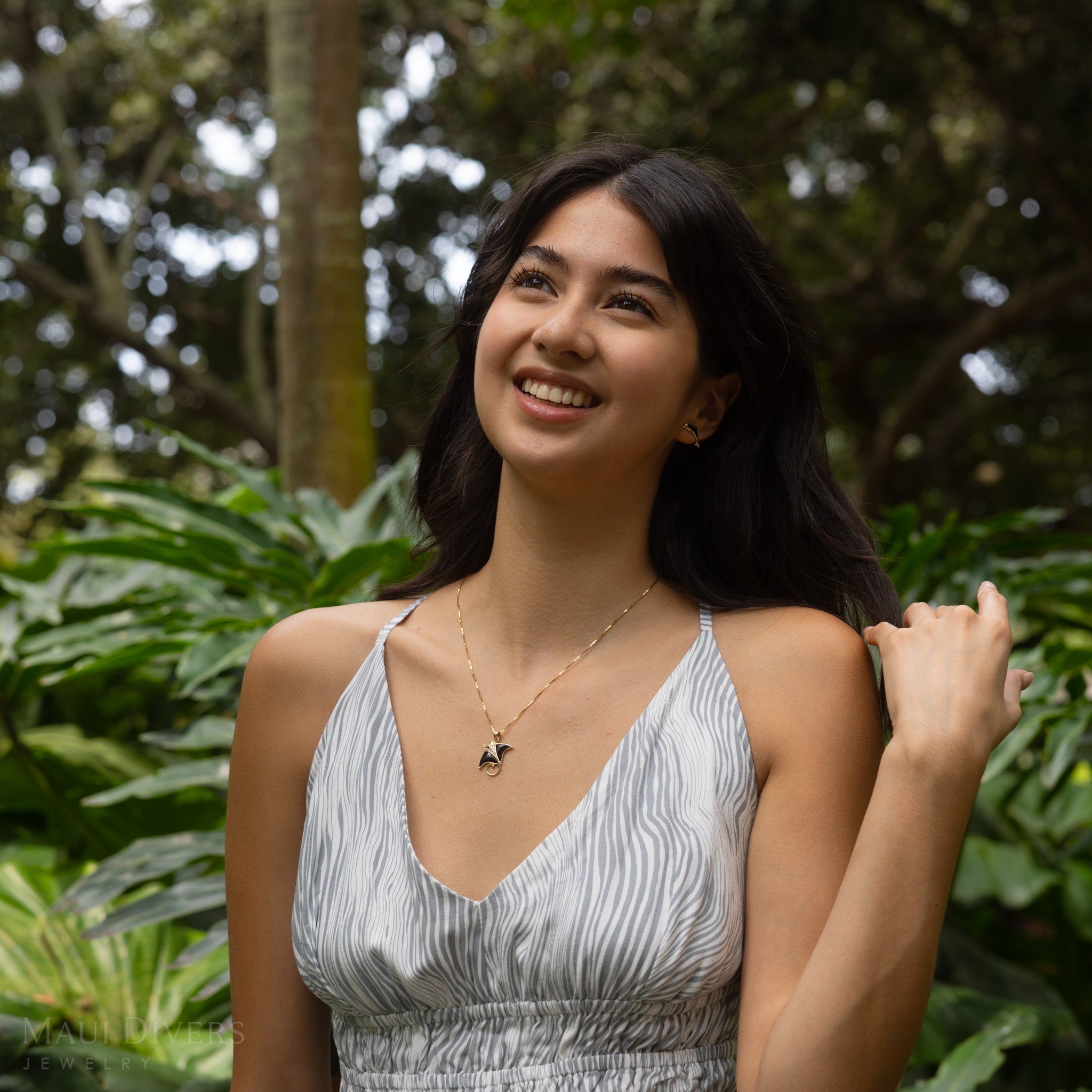 The Manta Ray Pendant from our Sealife Collection features the stunningly lustrous Hawaiʻi state gem, black coral, diamond, and gold. Locally made in Hawaiʻi, this Manta Ray Pendant is a perfect way to commemorate your trip to Maui.
