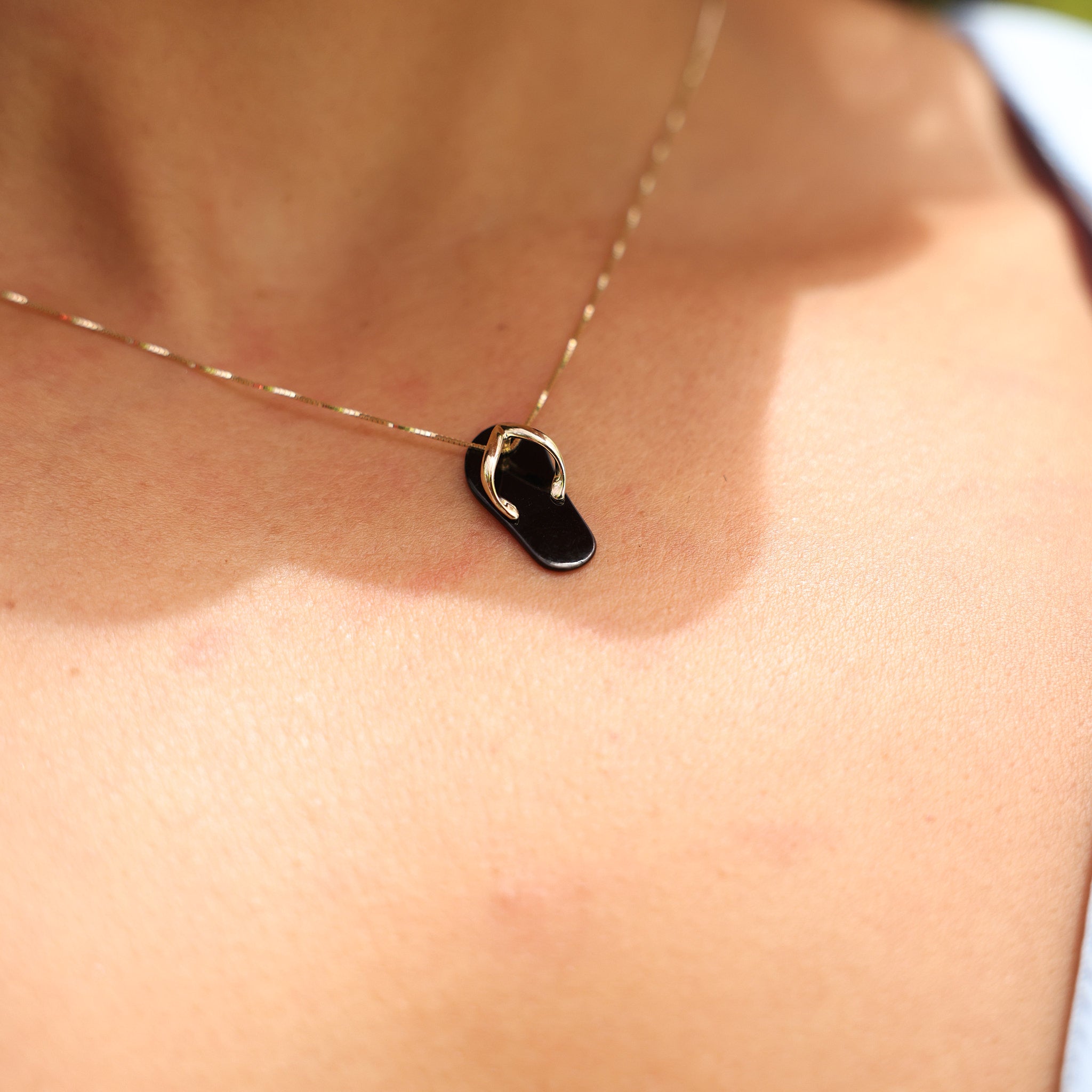 Inspired by flip-flops or "Slippers" in Hawaiʻi, this playful Slipper Pendant is crafted in 14k Yellow Gold. Crafted with lustrous Hawaiian black coral, the official state gem of Hawaiʻi.