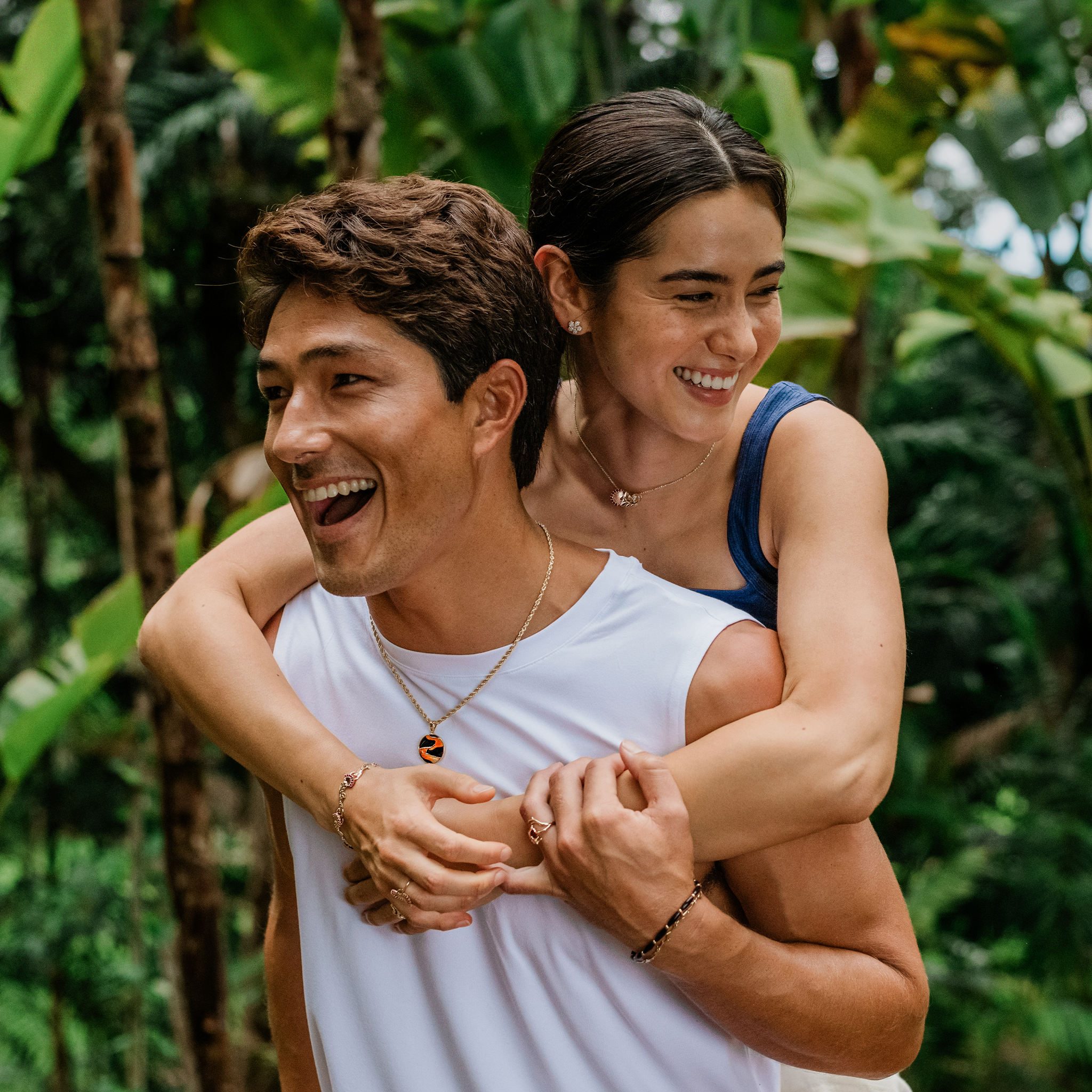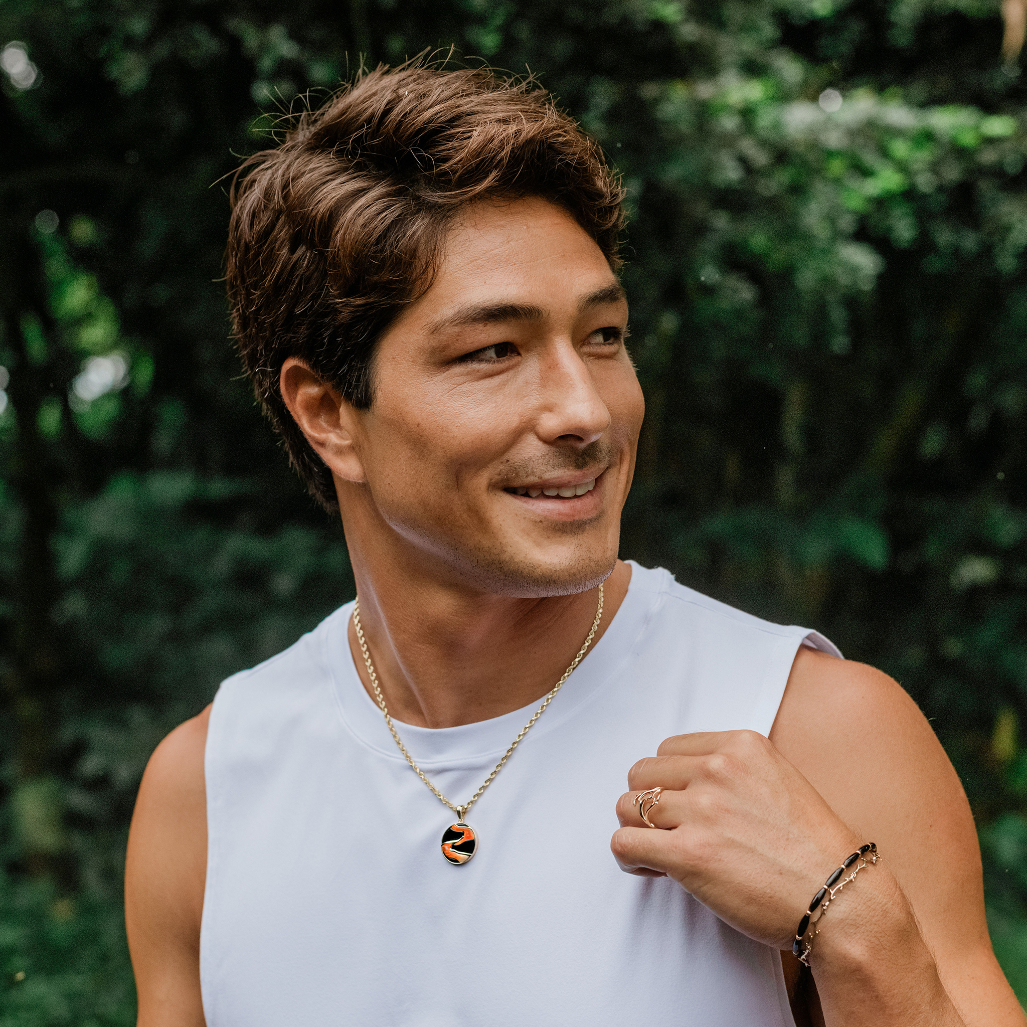 Inspired by Hawaiʻi's Kīlauea and Mauna Loa volcanoes, the Lava Flow Pendant is a window to the world's most active volcanoes. Fiery red spiny oyster flows through the lustrous Hawaiian black coral, capturing the thrilling lava flows and molten rock of Hawaiʻi Island.