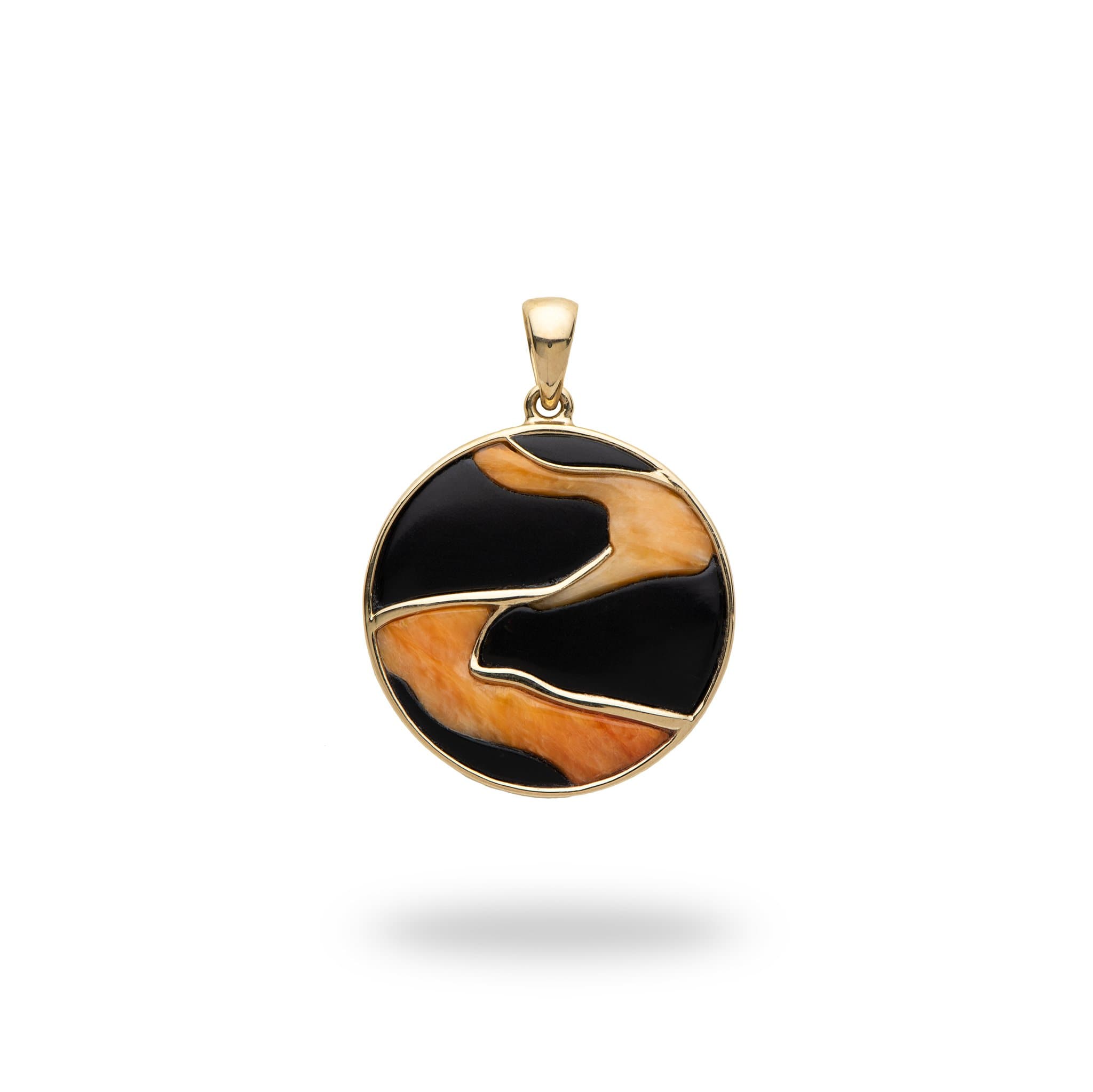 Lava Flow Black Coral and Spiny Oyster Pendant in Gold - 22mm