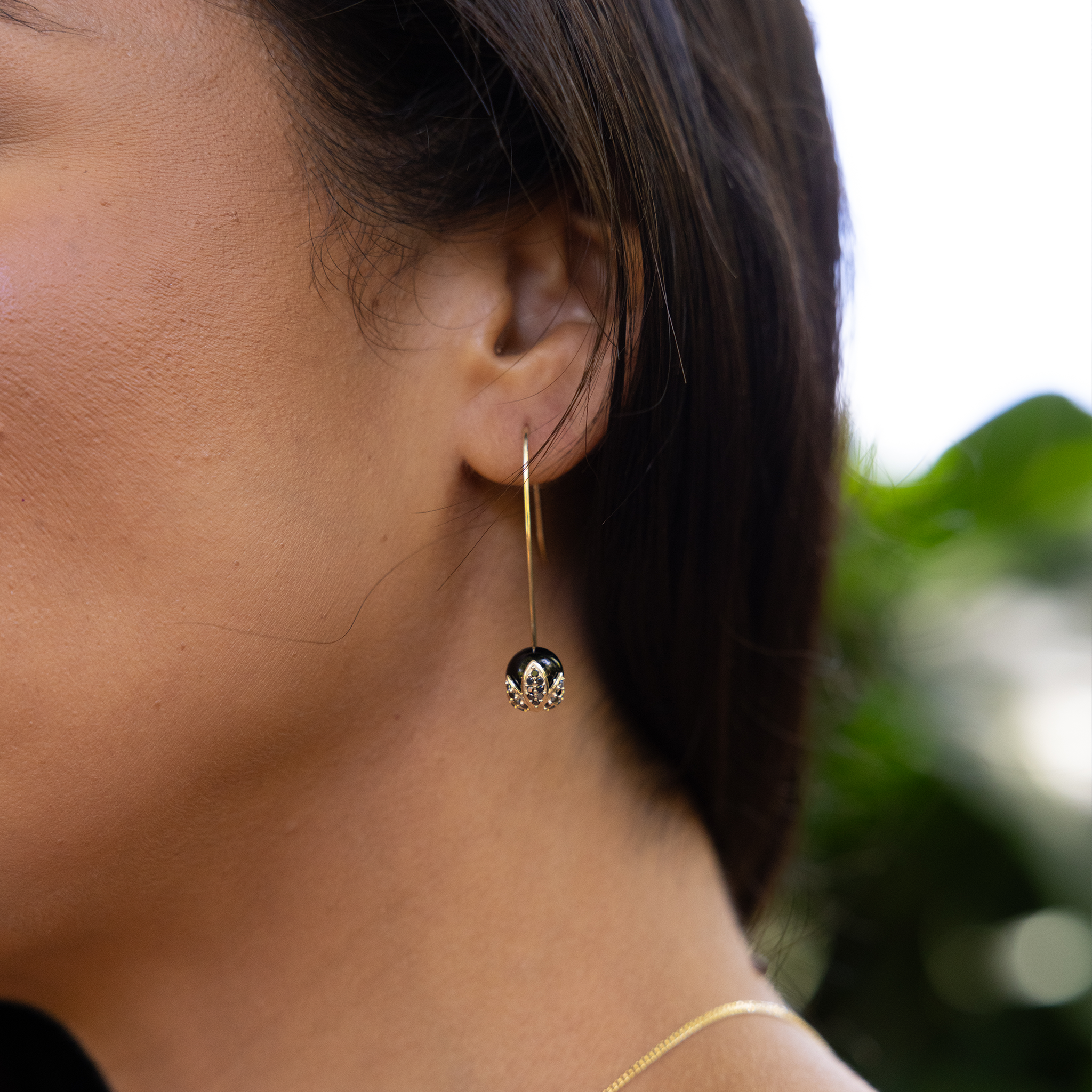Night Blossom Black Coral Earrings in Gold with Black Diamonds