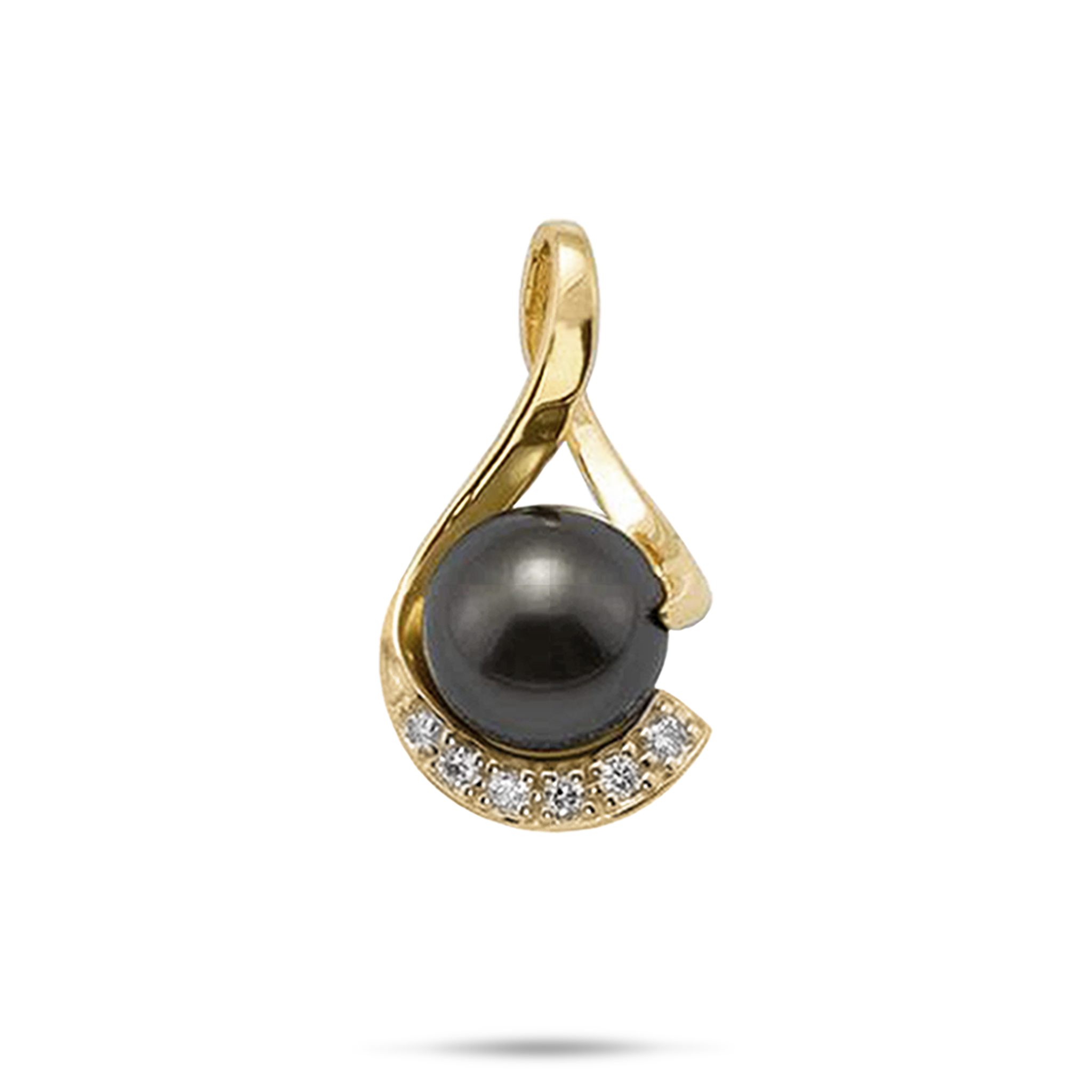 The Tahitian Black Pearl Pendant in 14k gold features a sleek infinity design with sparkling ethically sourced diamonds accentuating the tropical pearl.