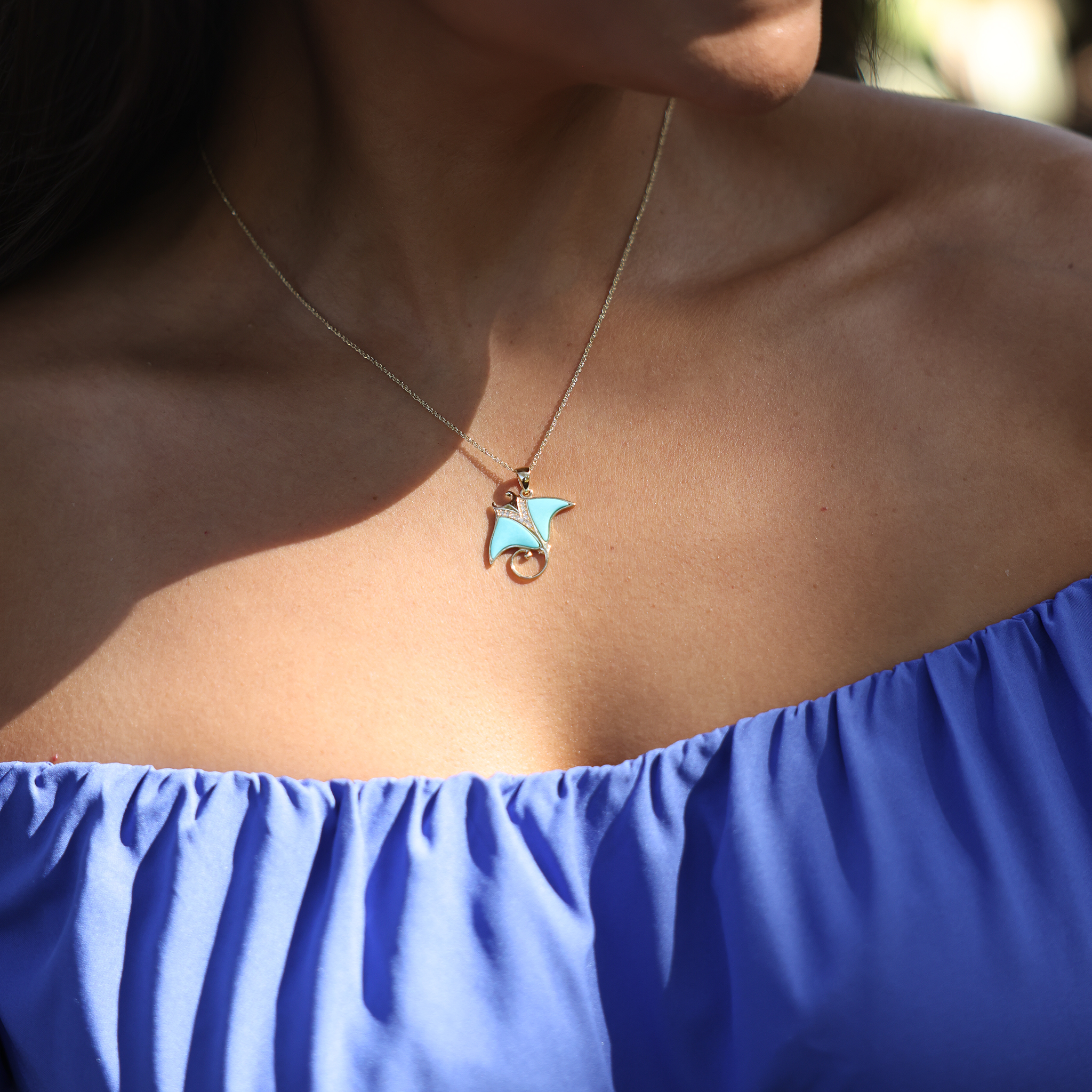 シーライフ・マンタ・ターコイズ・ペンダント ダイヤモンド・ゴールド 21mm