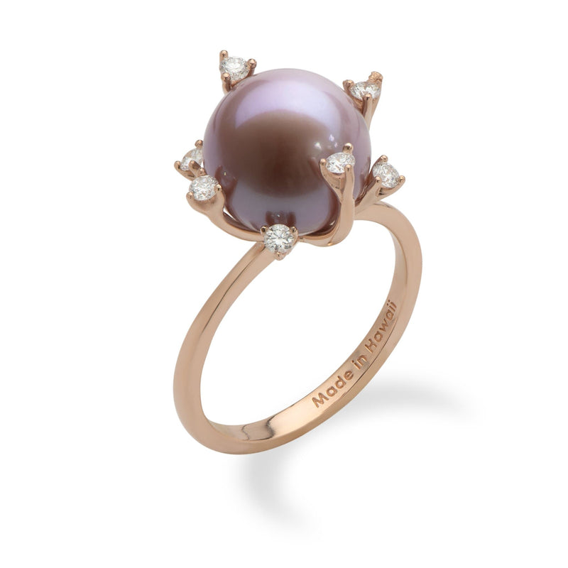 プロテア ライラック 淡水パール リング ダイヤモンド ローズゴールド - 10-11mm