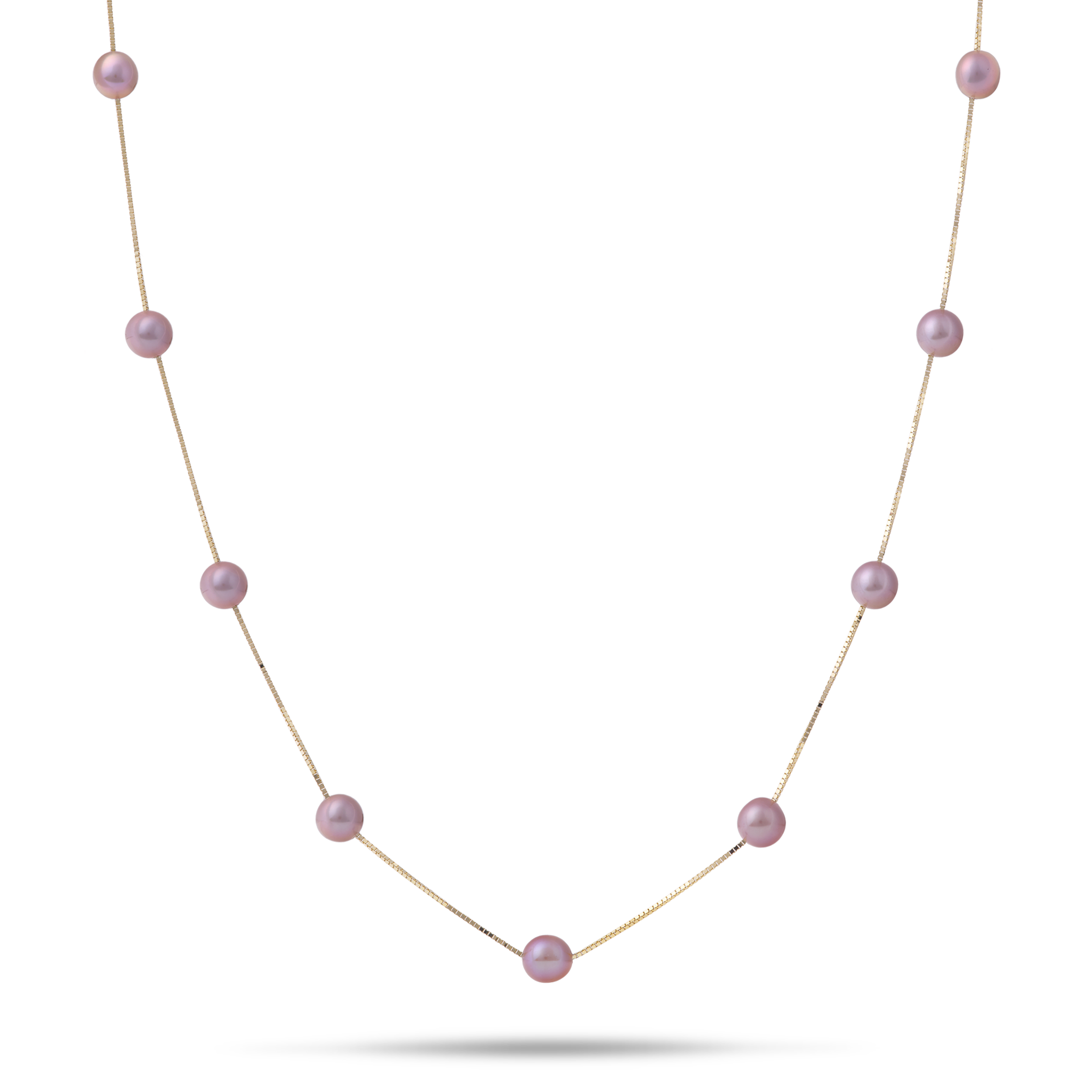 Charming and dainty, this 18" necklace in 14k yellow gold features nine vibrant freshwater pearls on a sleek box chain. A perfect everyday accessory and great for layering.