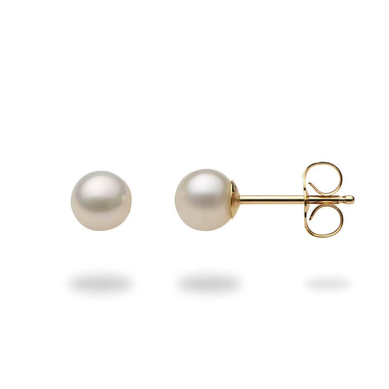 淡水ホワイトパールピアス ゴールド - 5-6mm