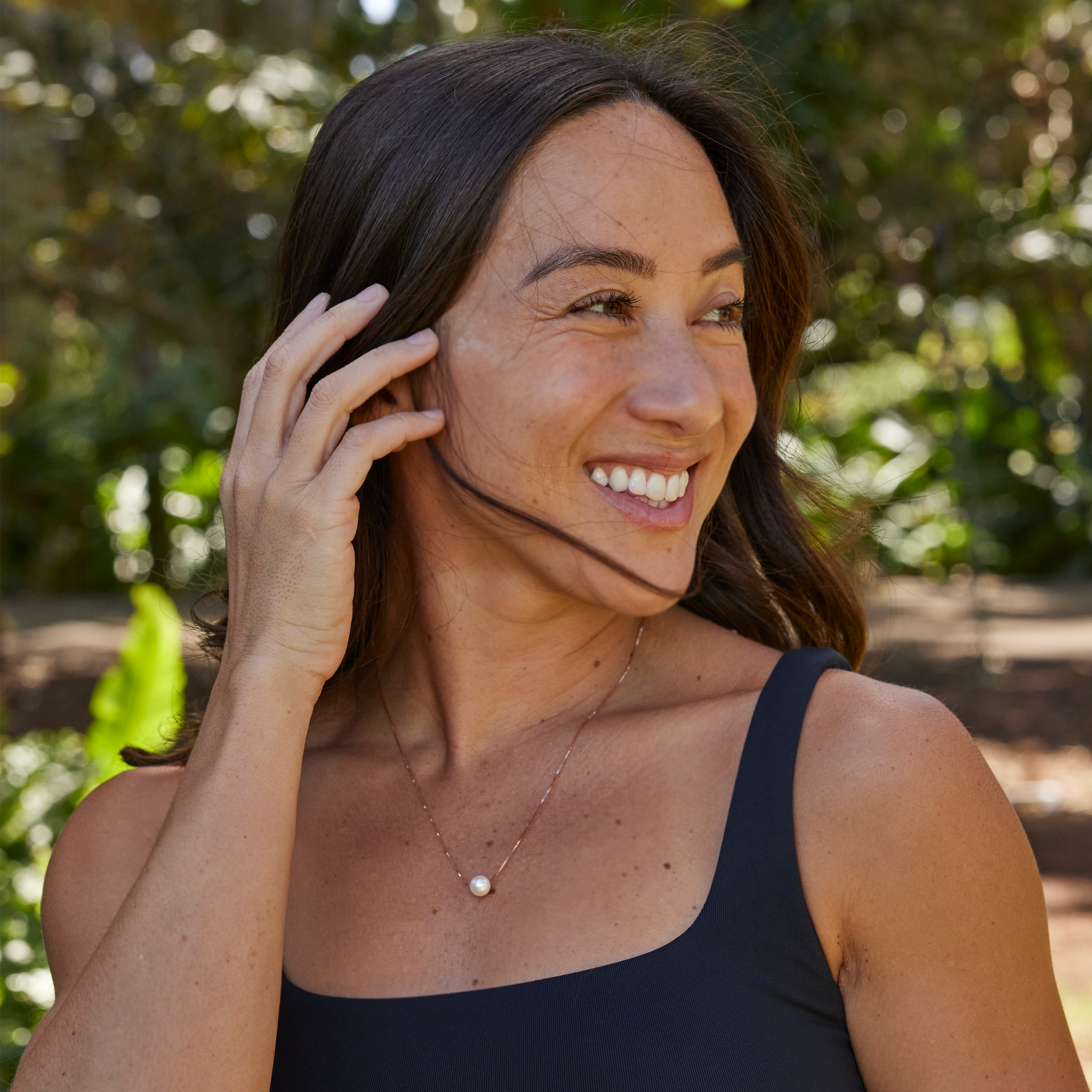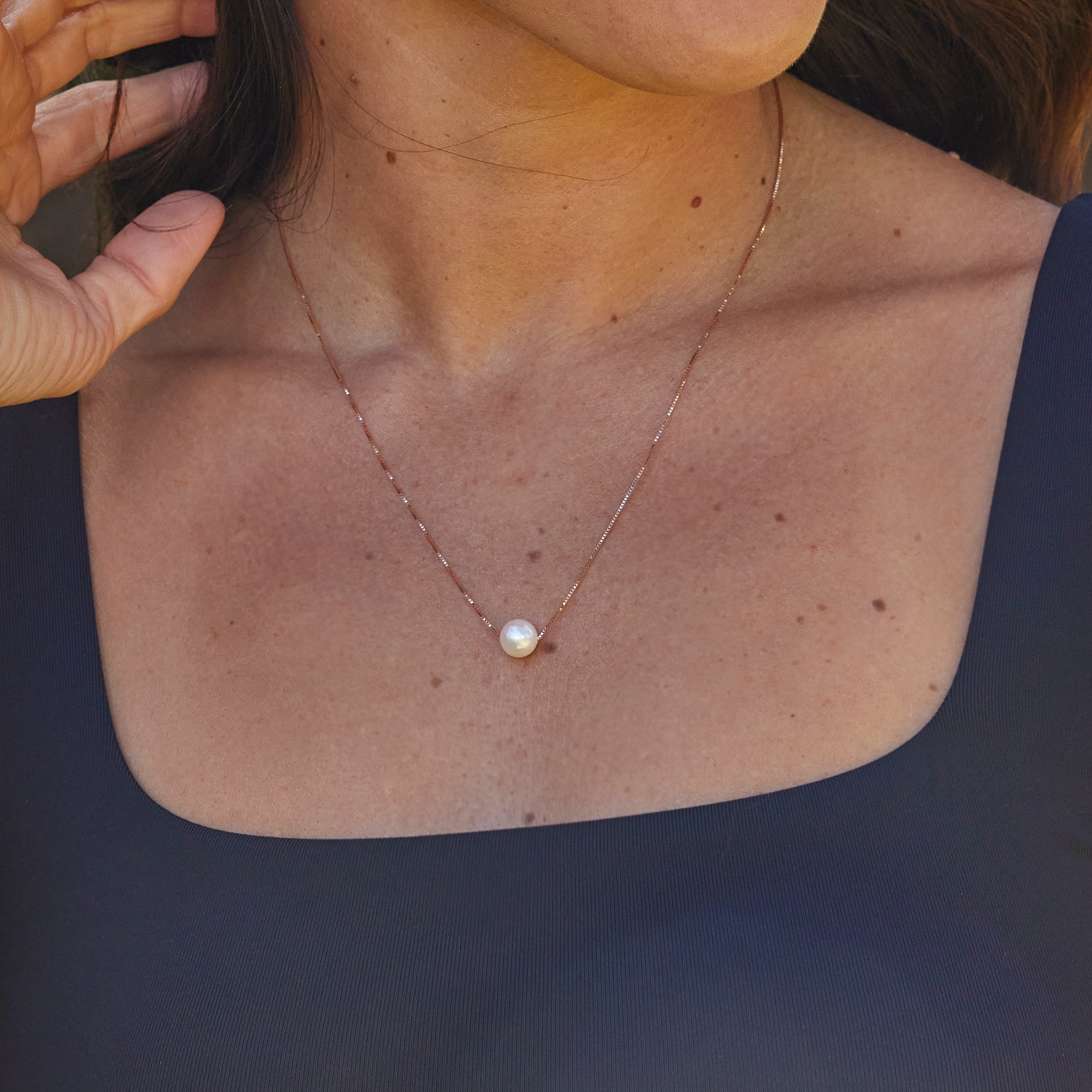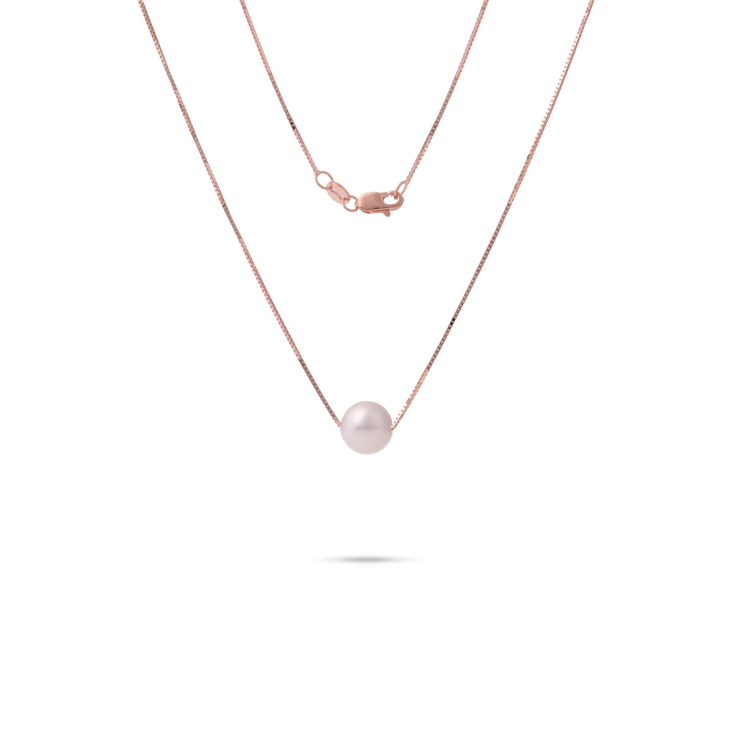 Crafted with a sleek adjustable box chain in 14k rose gold, this necklace features a classic white Akoya pearl with beautiful luster.