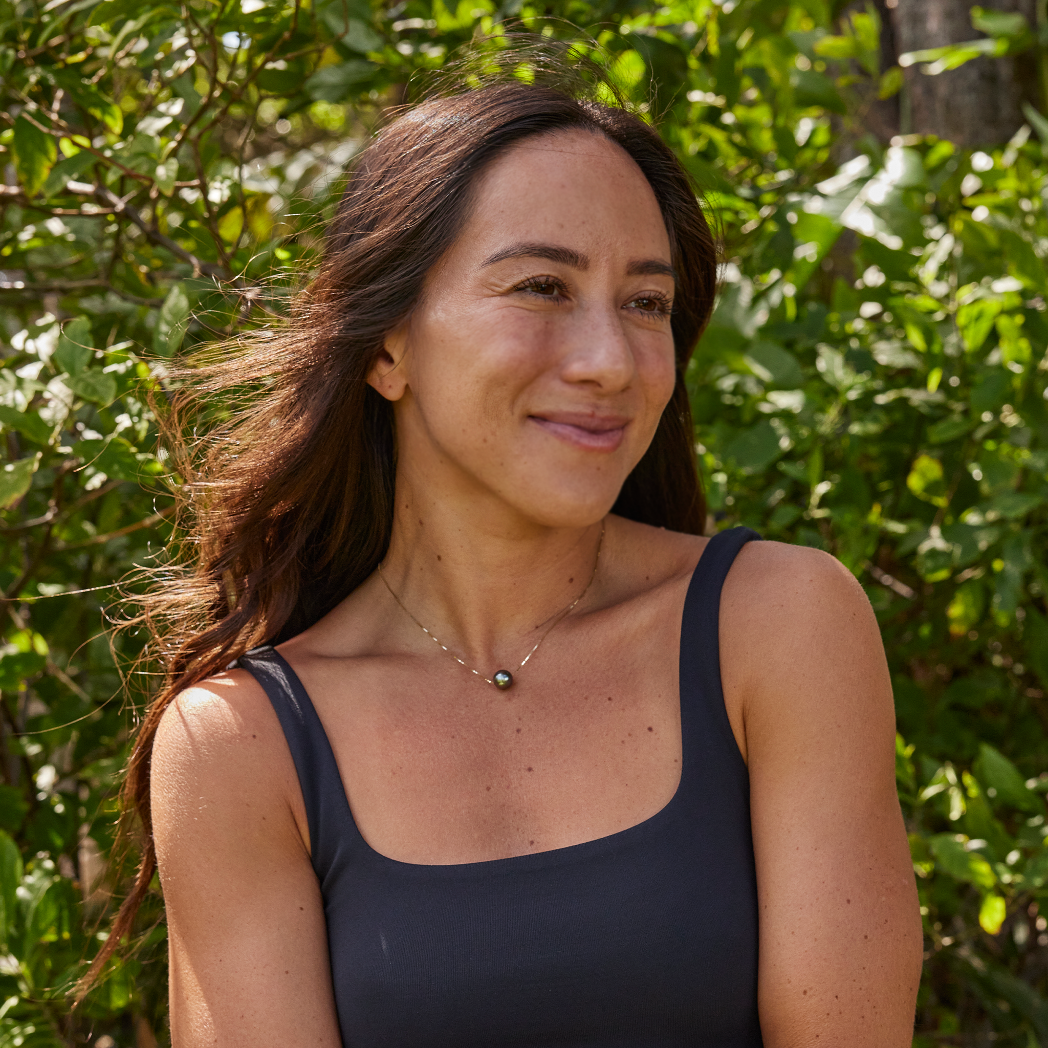 The Tahitian Pearl Necklace in 14k yellow gold is a favorite in Hawaiʻi. With a simple, clean box chain and a sliding Tahitian black pearl, it easily dresses up or down.