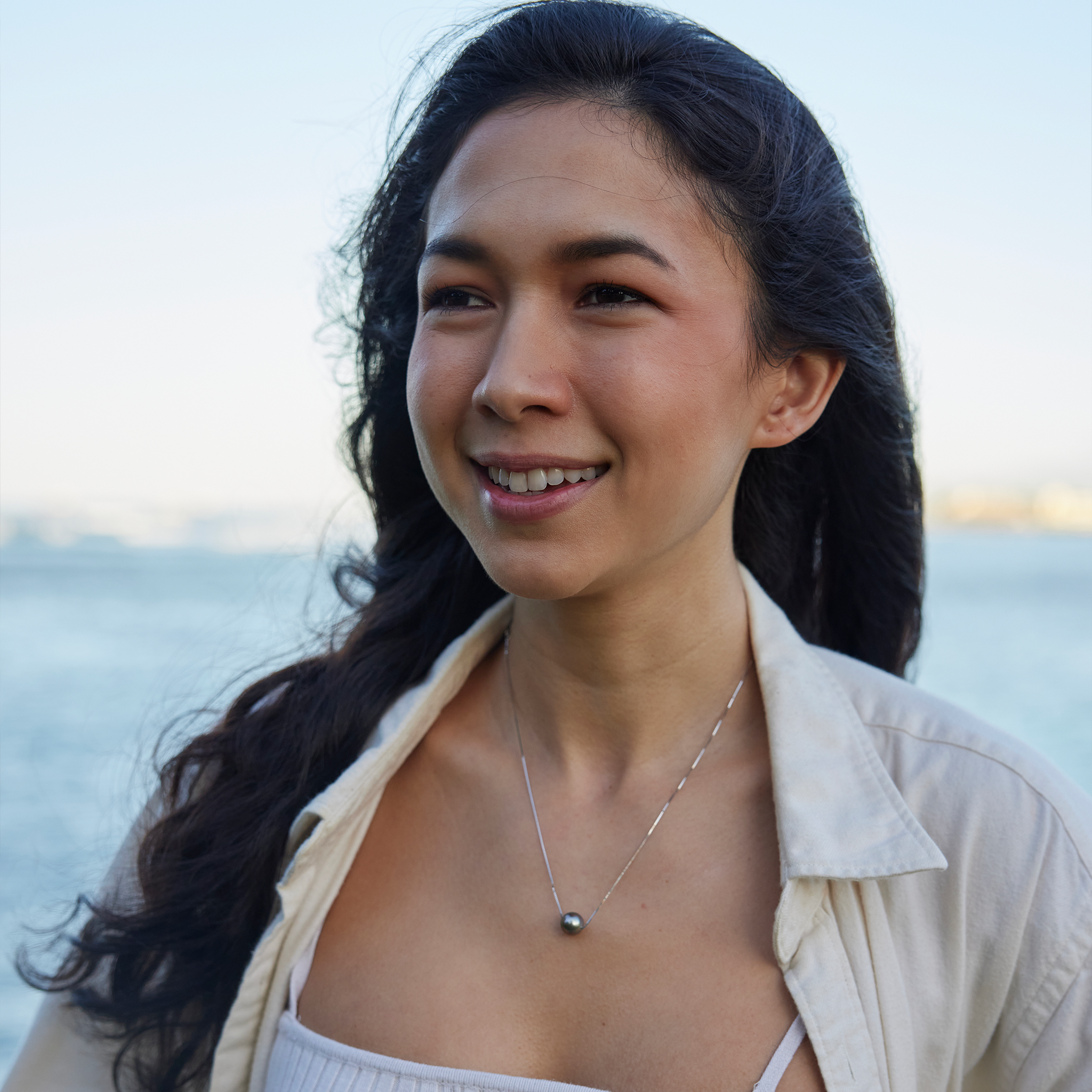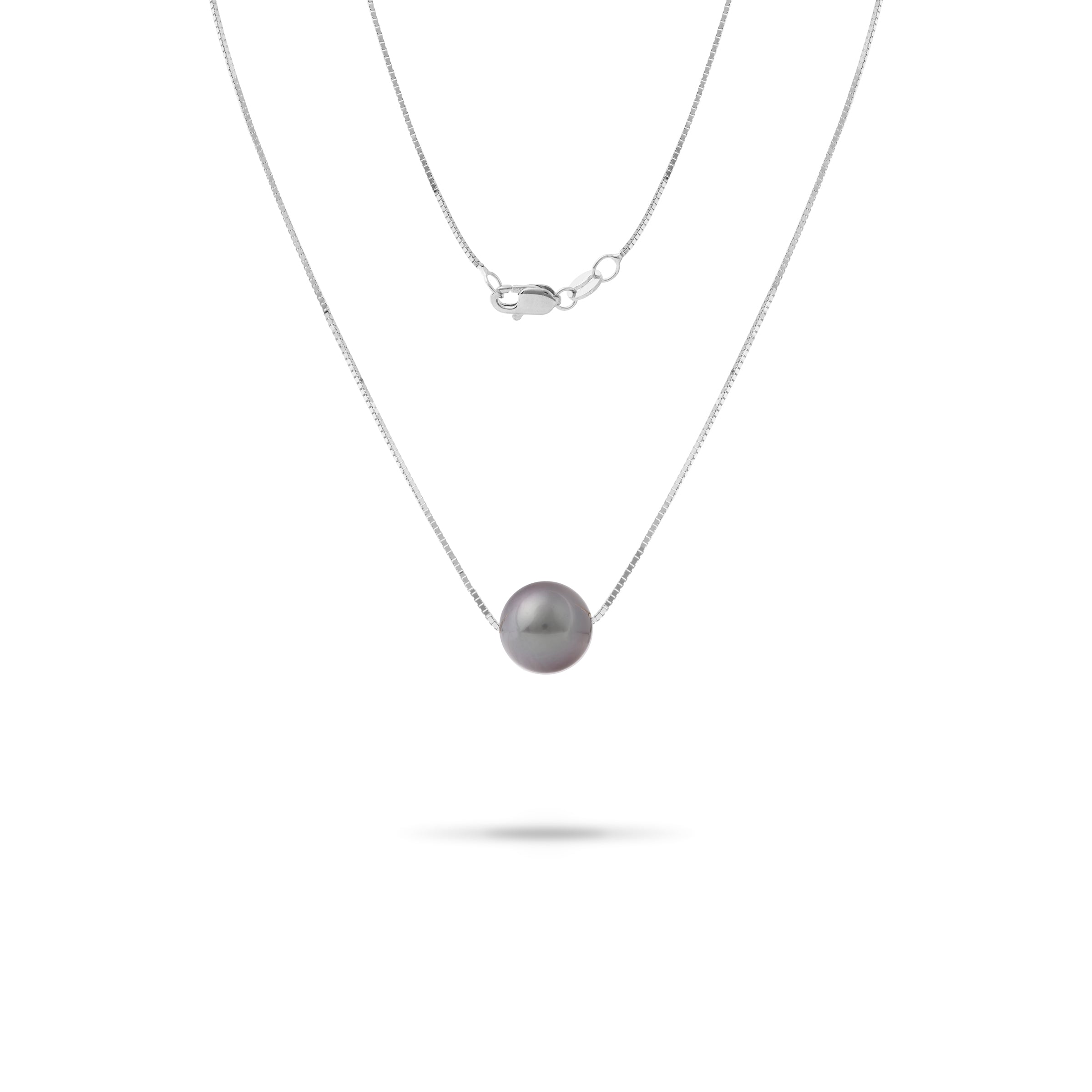 A perfect layering necklace, the Tahitian Pearl Necklace in White Gold features a sleek 14k white gold box chain and a beautiful sliding pearl.