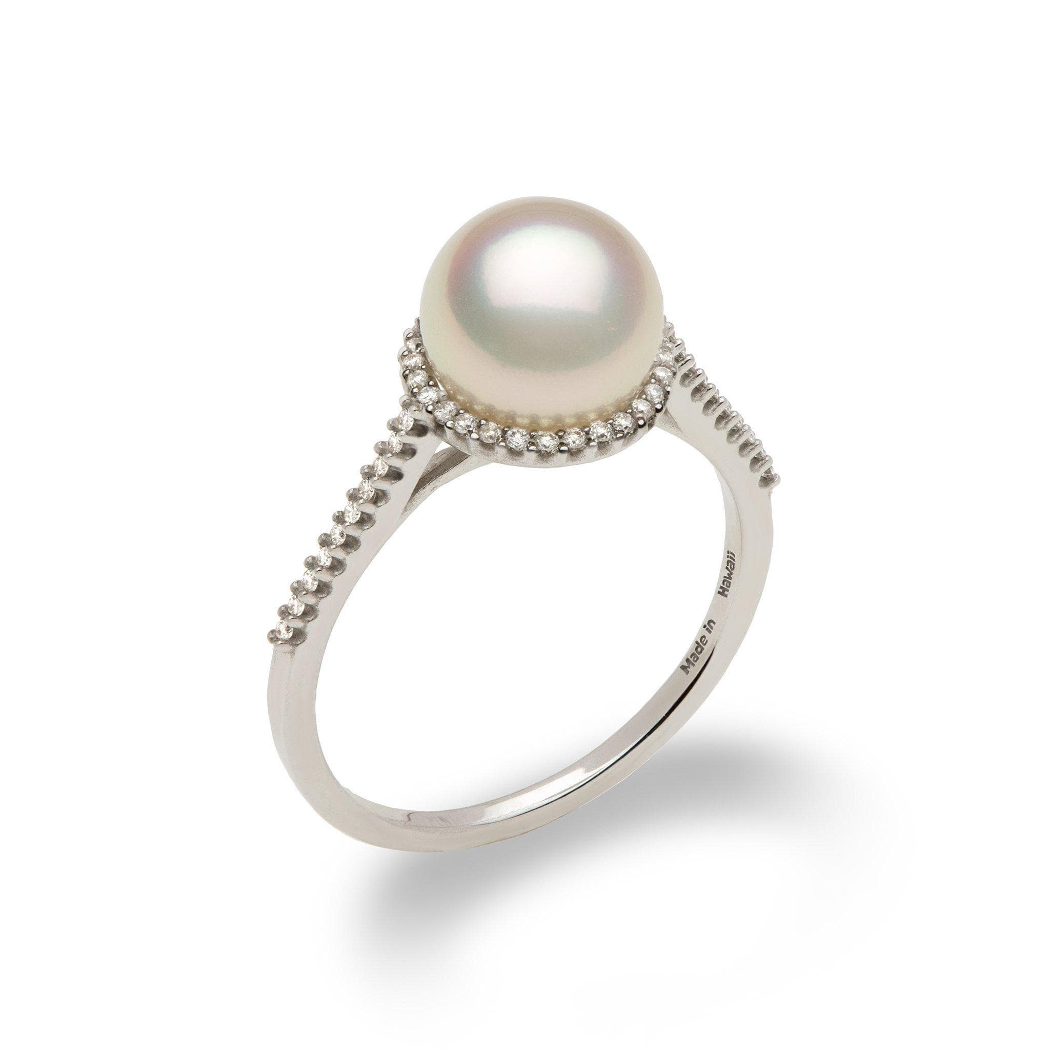 ヘイロー アコヤ ホワイト パール リング ダイヤモンド ホワイトゴールド - 8mm