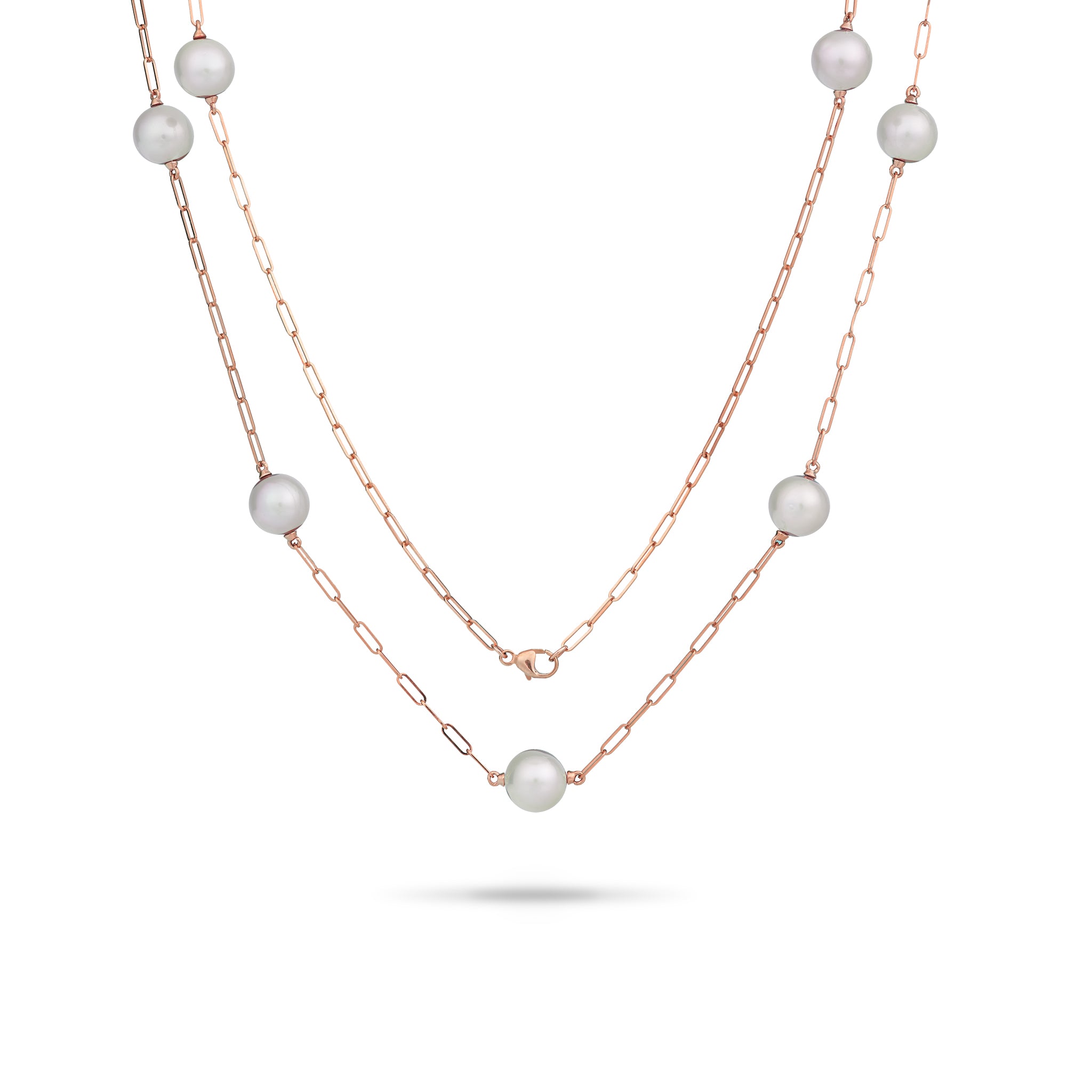アコヤ真珠 ペーパークリップ チェーン ネックレス (ローズゴールド