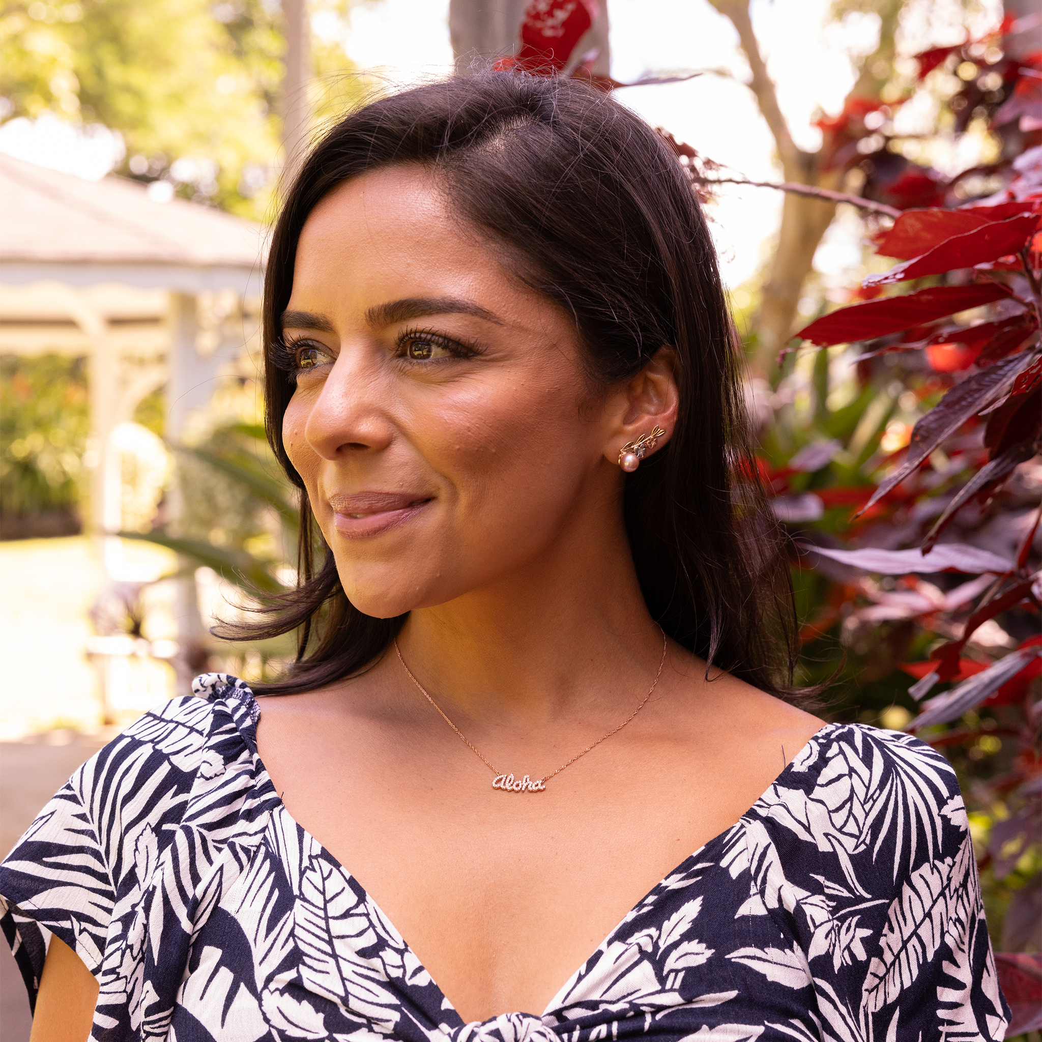 The 16-inch Aloha Necklace features sparkling natural diamonds that create that stunning Aloha script design. Complete with a shimmering Singapore chain, this necklace will be a timeless treasure in your collection.