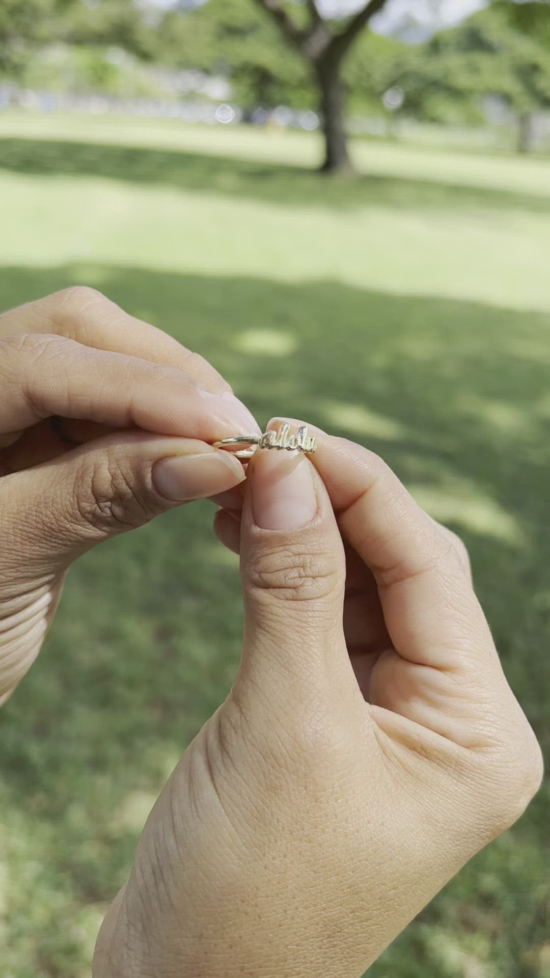 ゴールドのアロハ・リングで「アロハ」の特別なメッセージを身につけましょう。遊び心あふれるアロハの文字が、アロハ・スピリットとともに生きることを思い出させてくれます。