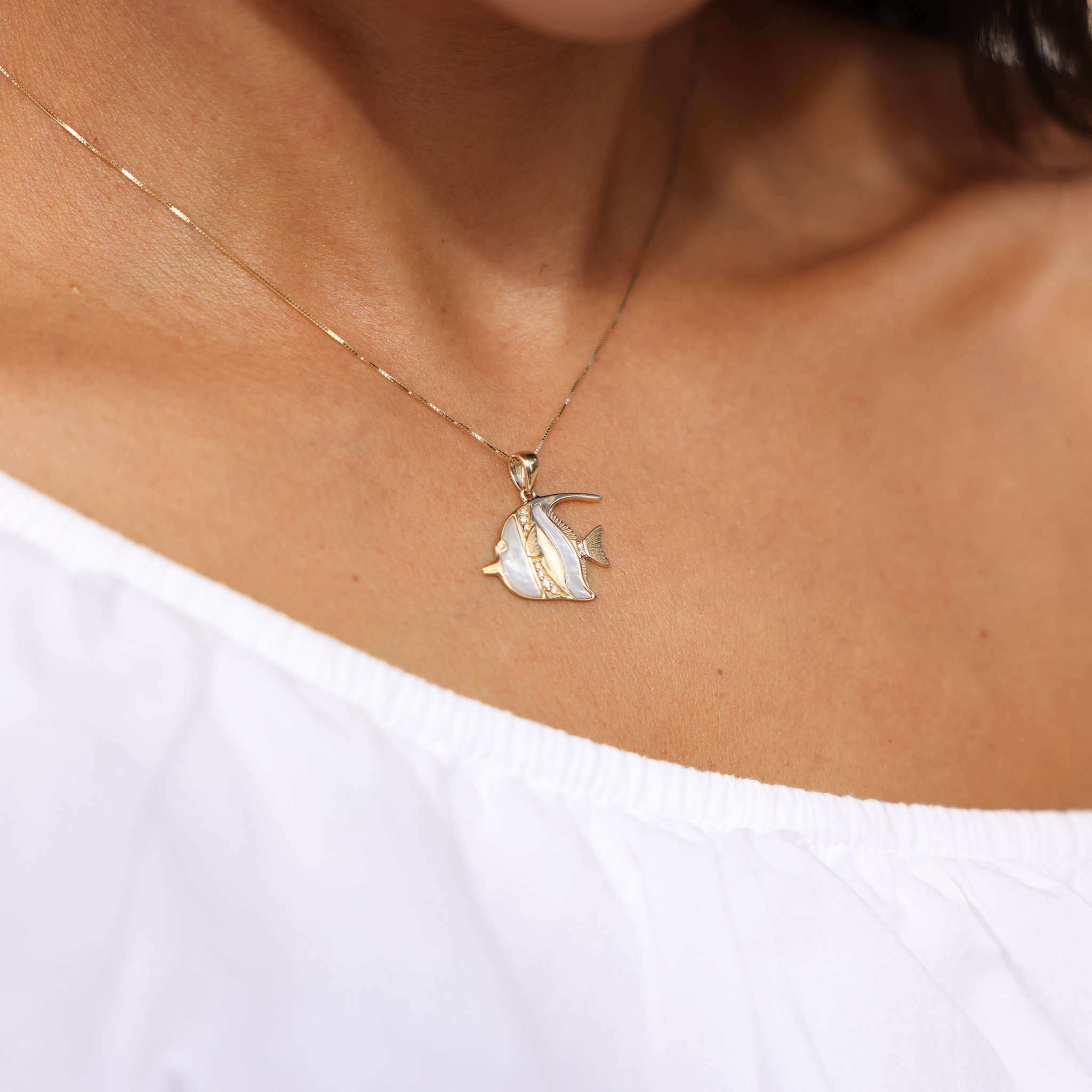 シーライフ エンジェルフィッシュ マザー・オブ・パール ペンダント ダイヤモンド ゴールド 23mm