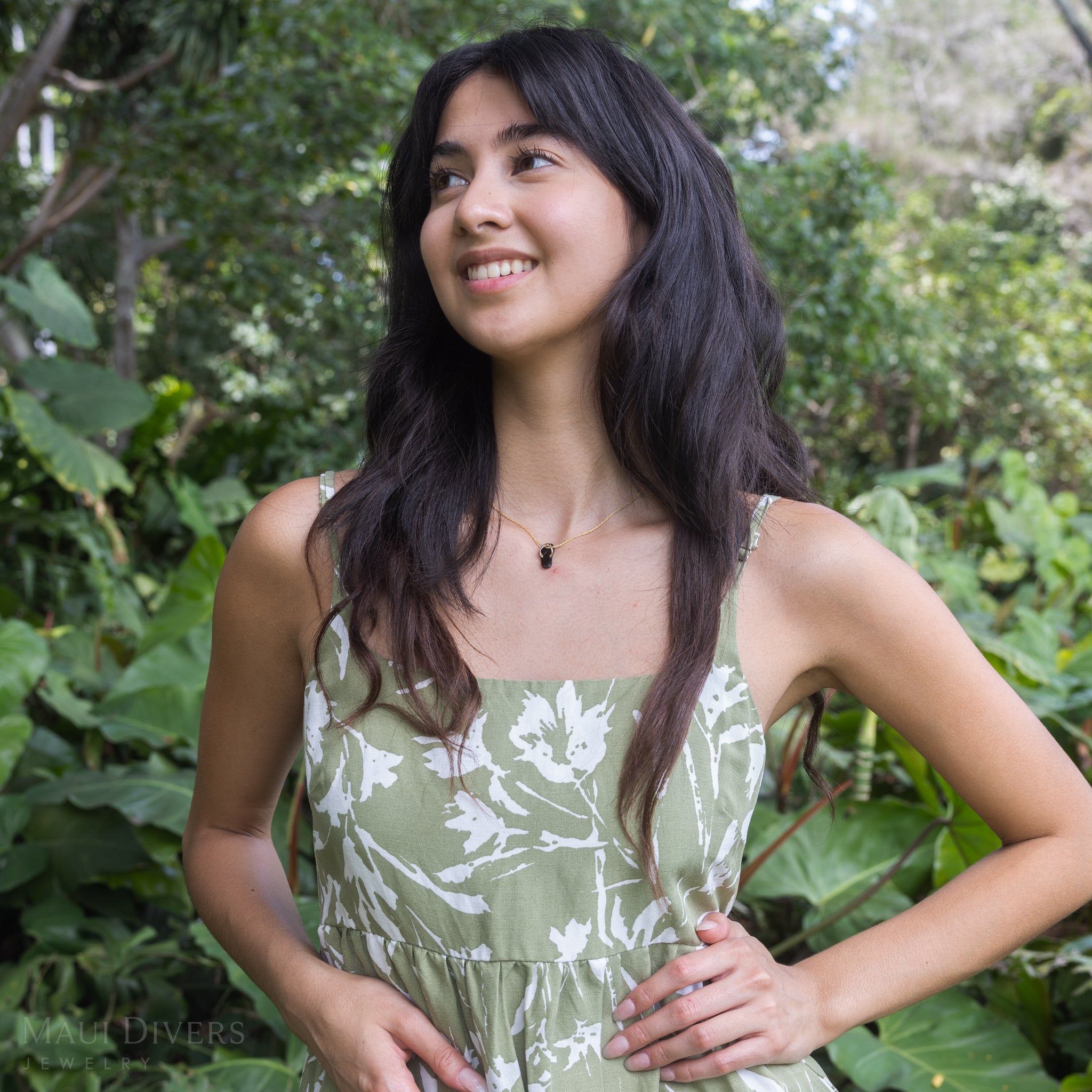 Inspired by flip-flops or "Slippers" in Hawaiʻi, this playful Slipper Pendant is crafted in 14k Yellow Gold. Crafted with lustrous Hawaiian black coral, the official state gem of Hawaiʻi.