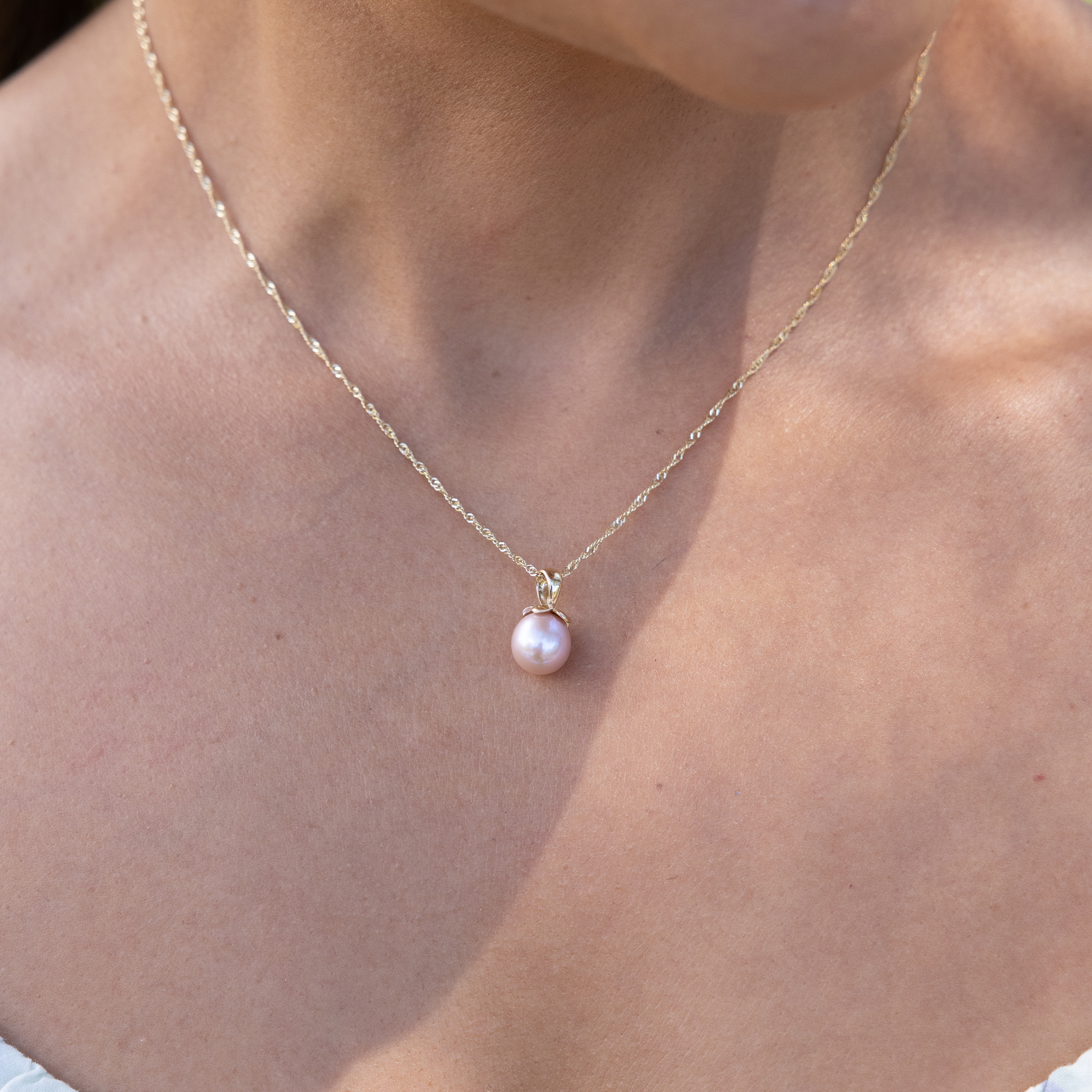 パール イン ブルームプルメリア ラベンダー 淡水パール ペンダント ゴールド 8-9mm