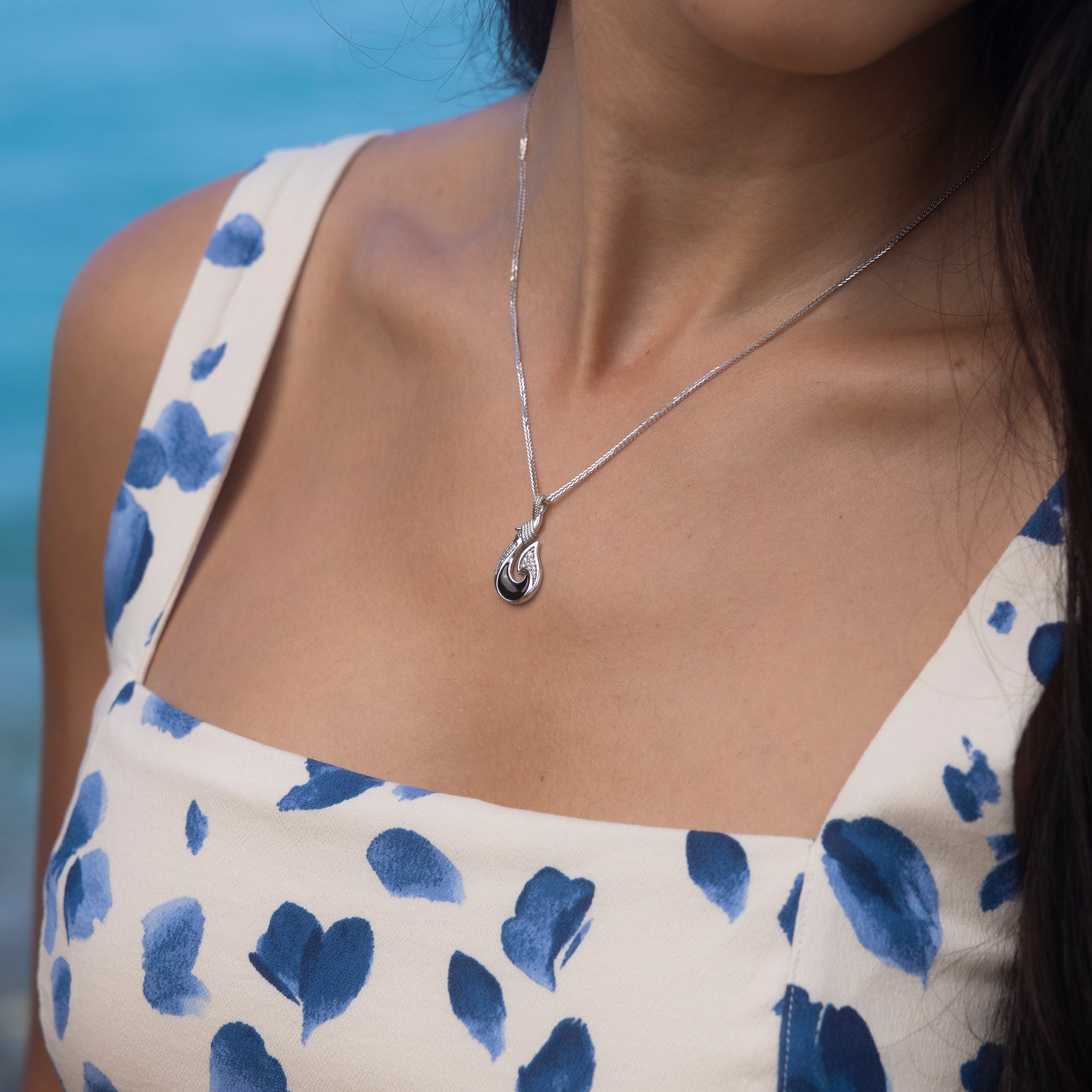 シーライフ・フィッシュフック・ブラックコーラル・ペンダント ダイヤモンド ホワイトゴールド 27mm