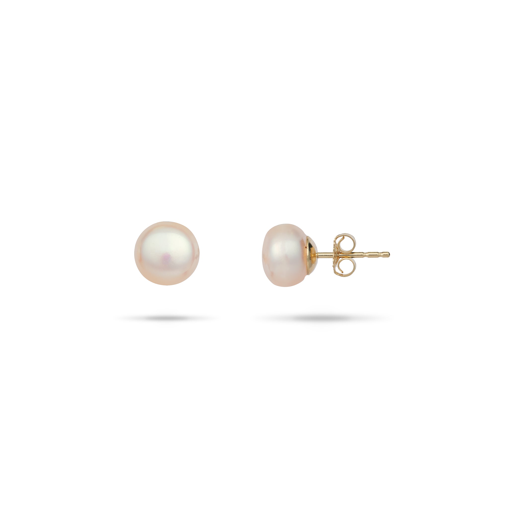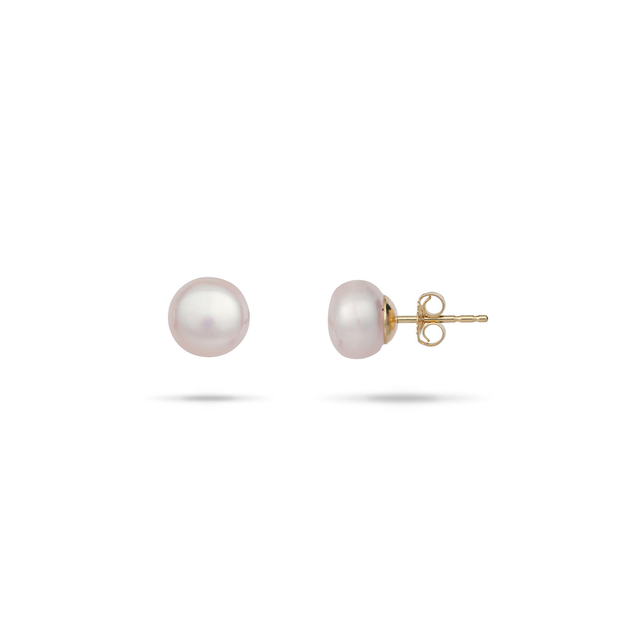 Button Freshwater Pearl Earrings in Gold - 8-9mm