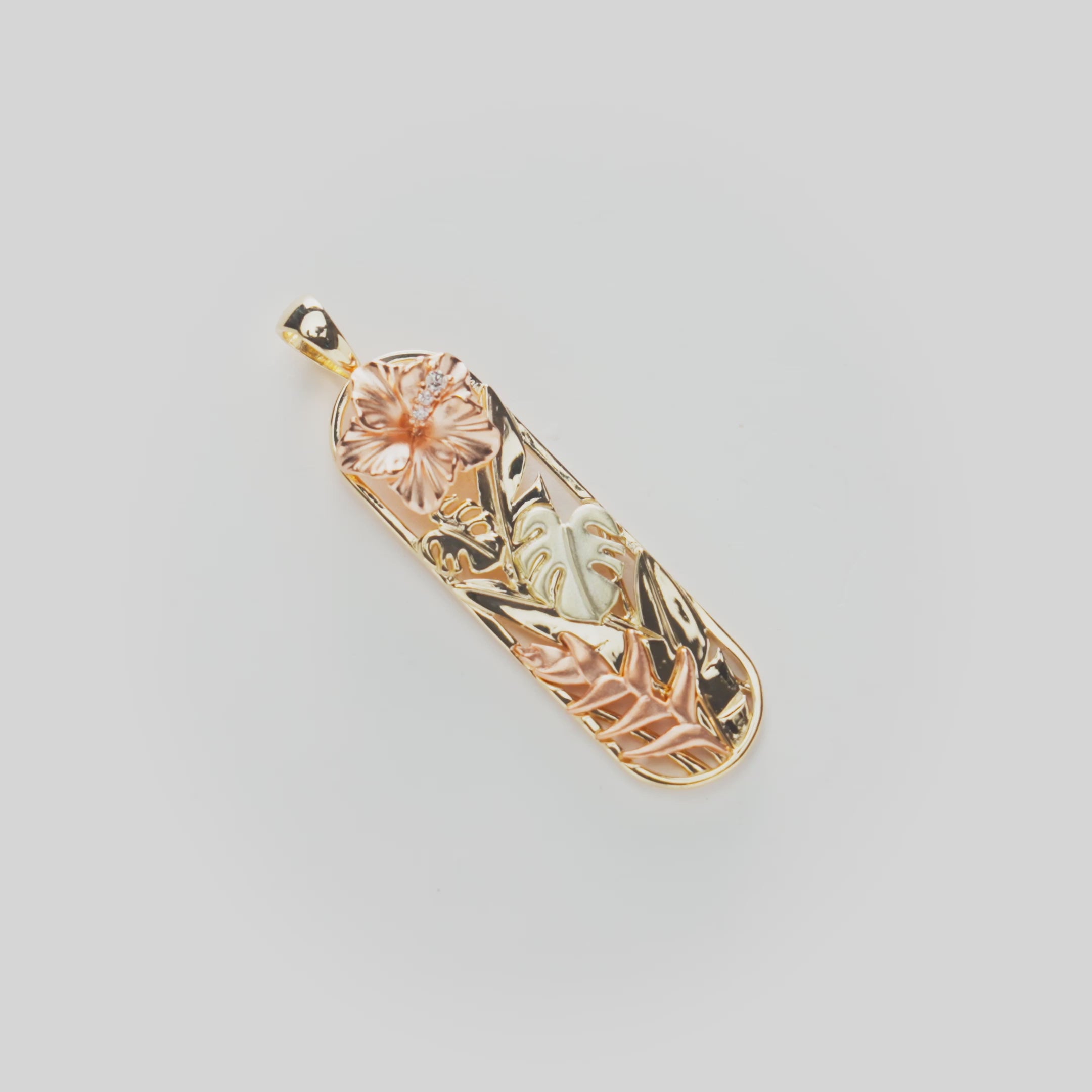 ハワイアン ガーデンズ ハイビスカス ペンダント ダイヤモンド トライカラー ゴールド - 32mm