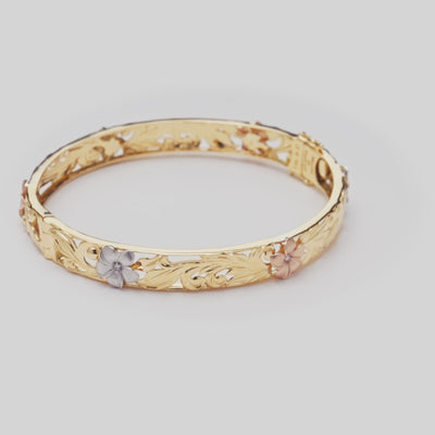 ハワイアン・エアルームプルメリア ヒンジブレスレット ダイヤモンド 8mm スリーカラーゴールド