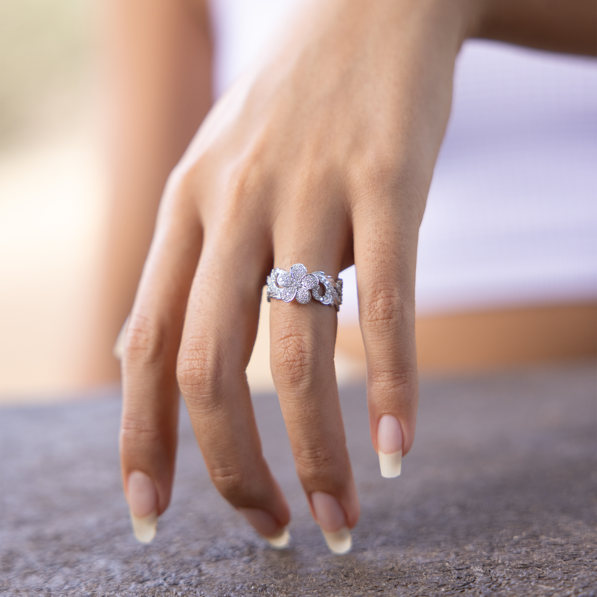 ハワイアン・エアルームプルメリア ダイヤモンド ホワイトゴールド - 10mm