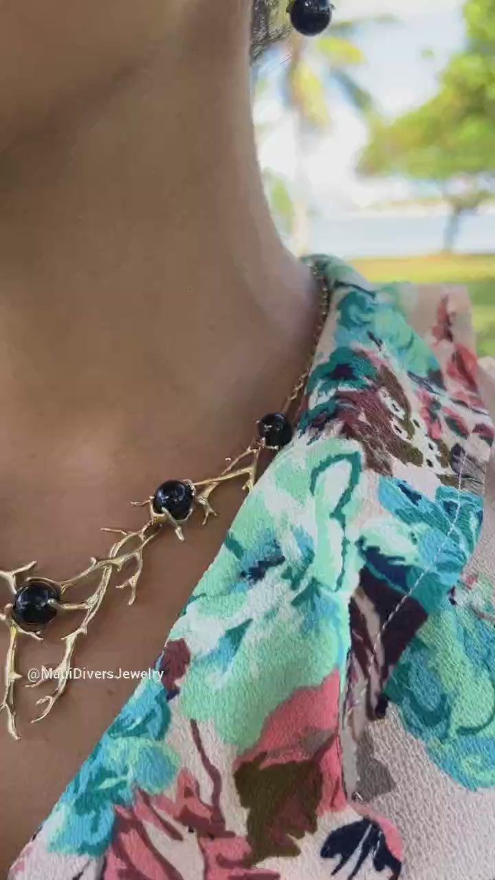 16-18 "アジャスタブル・ヘリテージ・ブラックコーラル・ネックレス(ゴールド