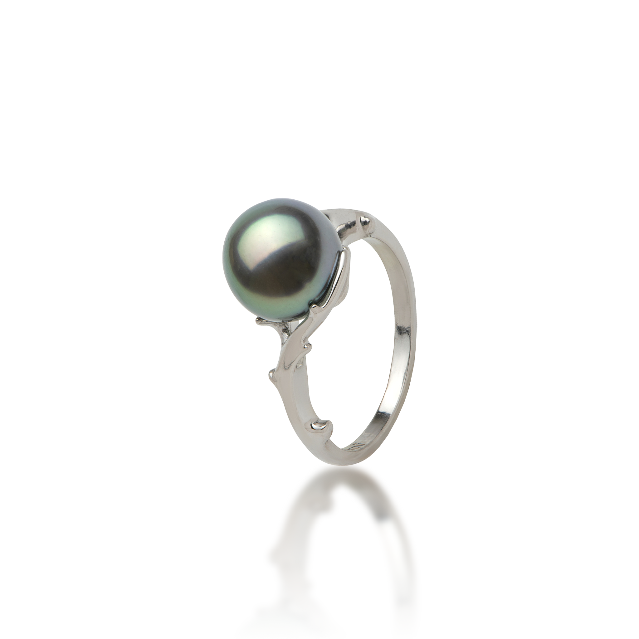 ヘリテージ タヒチアン ブラック パール リング ホワイトゴールド - 9-10mm