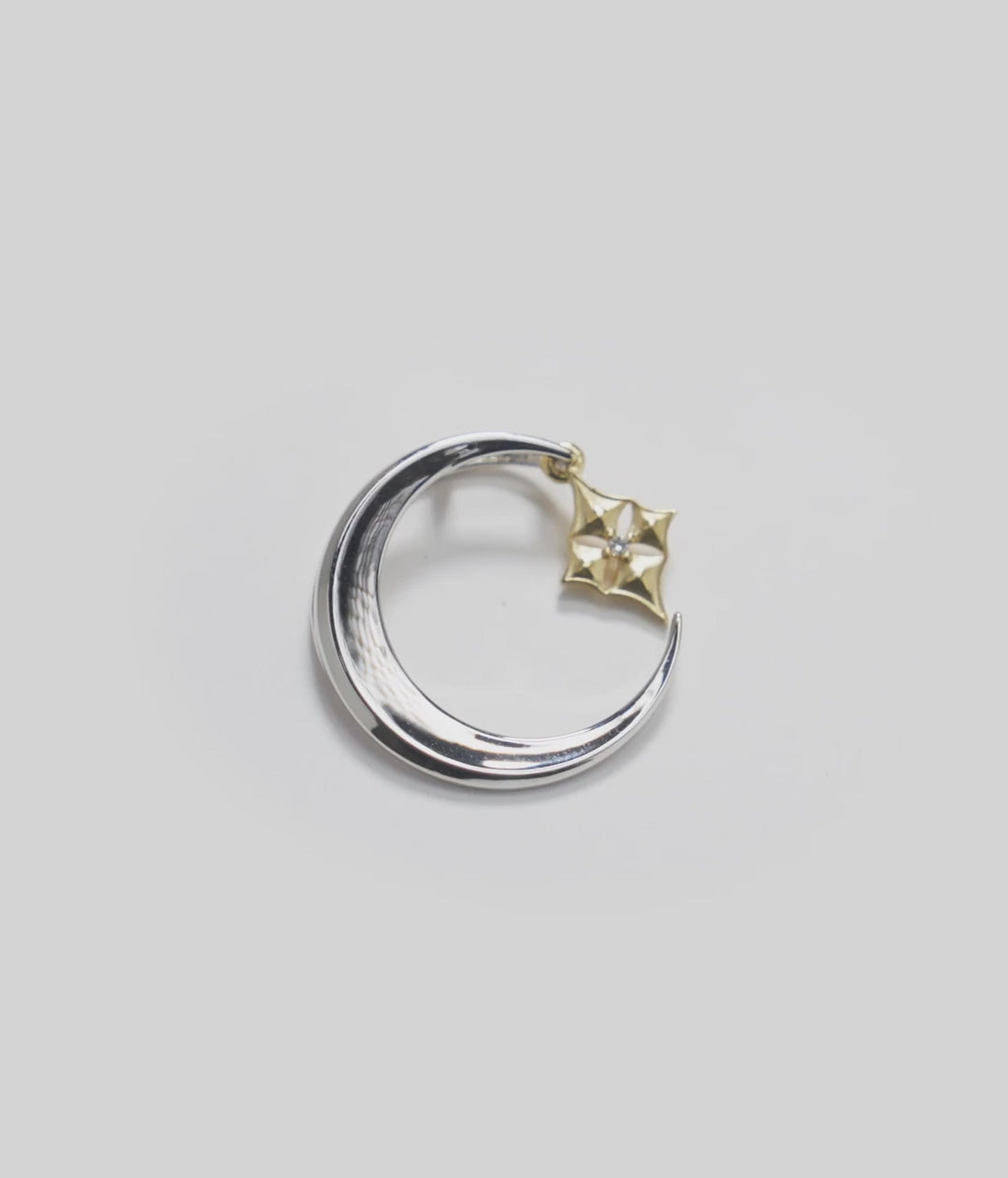 Hawaiian Quilted Star and Moon Pendant in Two Tone Gold with Diamond - 18mm