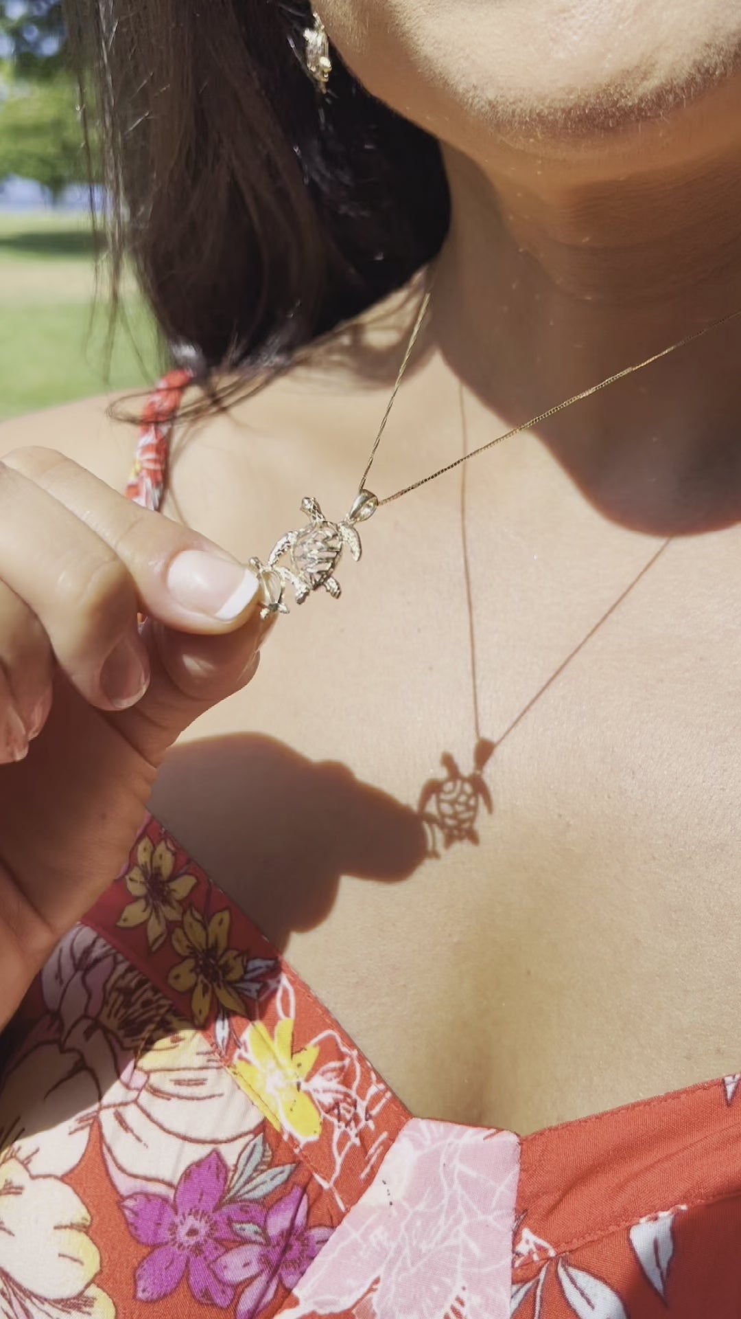 ホヌ オハナ(家族)ペンダント ゴールド - 19mm