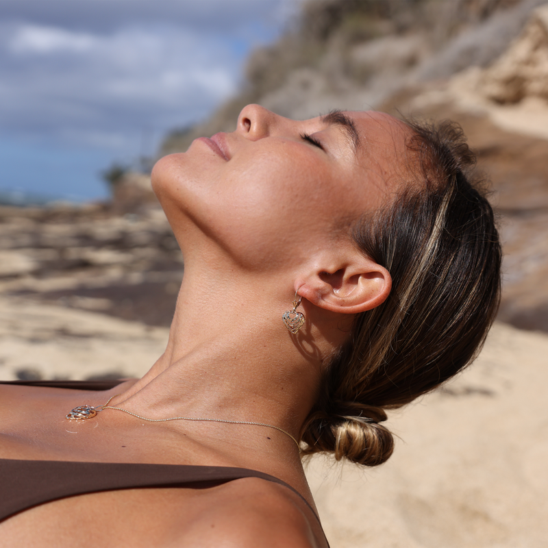ハワイ語で「愛」を意味するアロハを、ハートシェイプのダイヤモンドカットで表現した限定コレクション。光に透かすと、その影に隠されたアロハのメッセージが浮かび上がります。