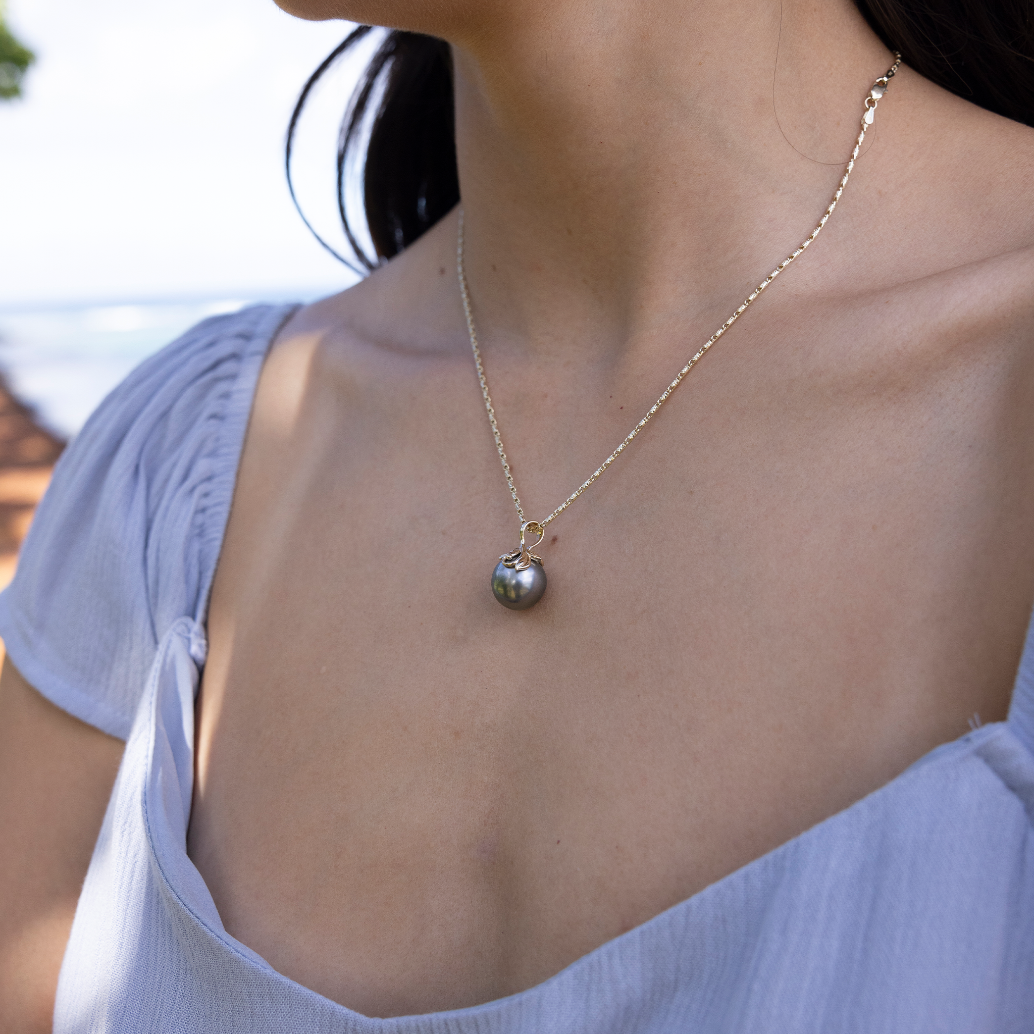 リビング・ヘアルーム・タヒチアン・ブラック・パール・ペンダント ゴールド 12-13mm