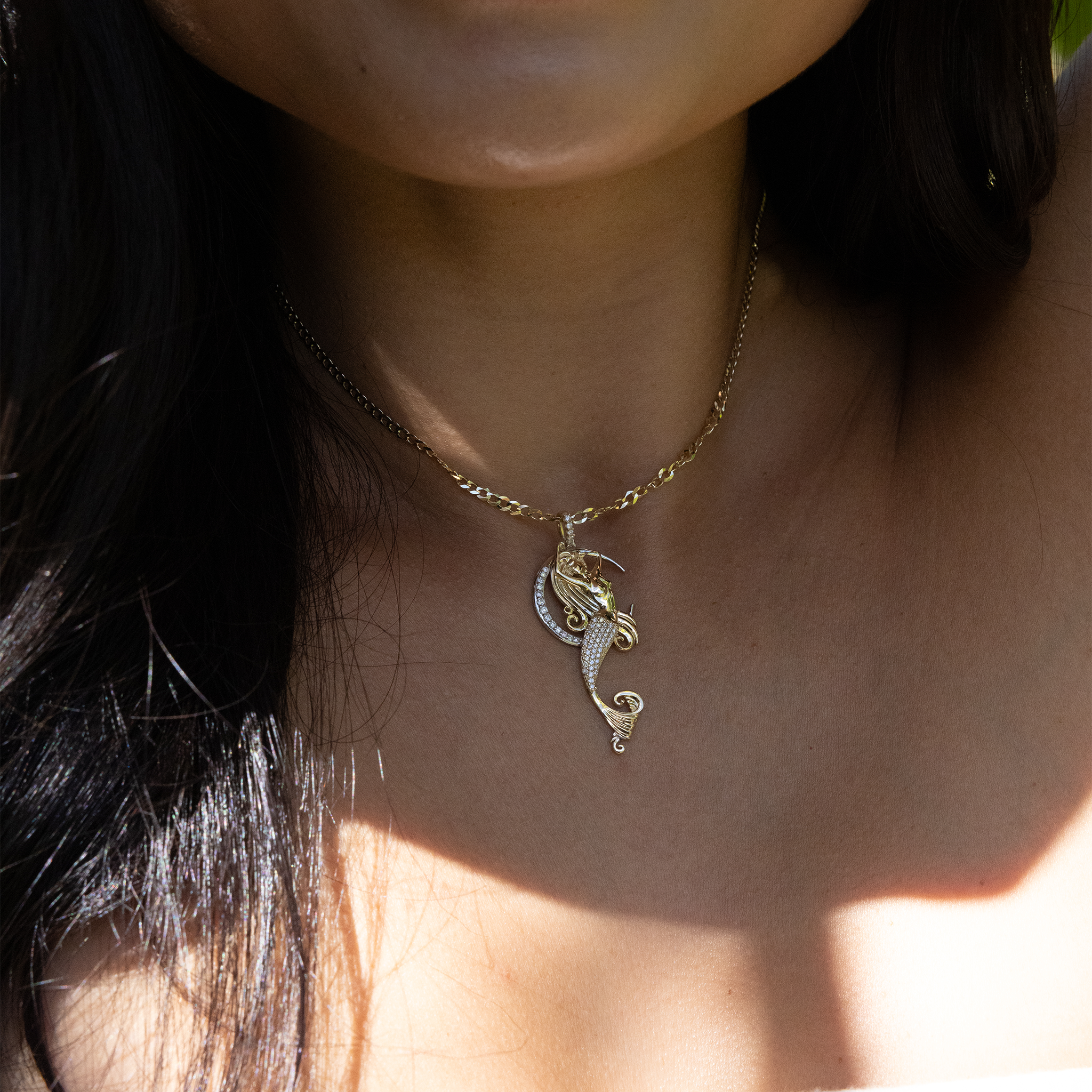 ムーンマーメイド ペンダント ダイヤモンド ツートーンゴールド 42mm