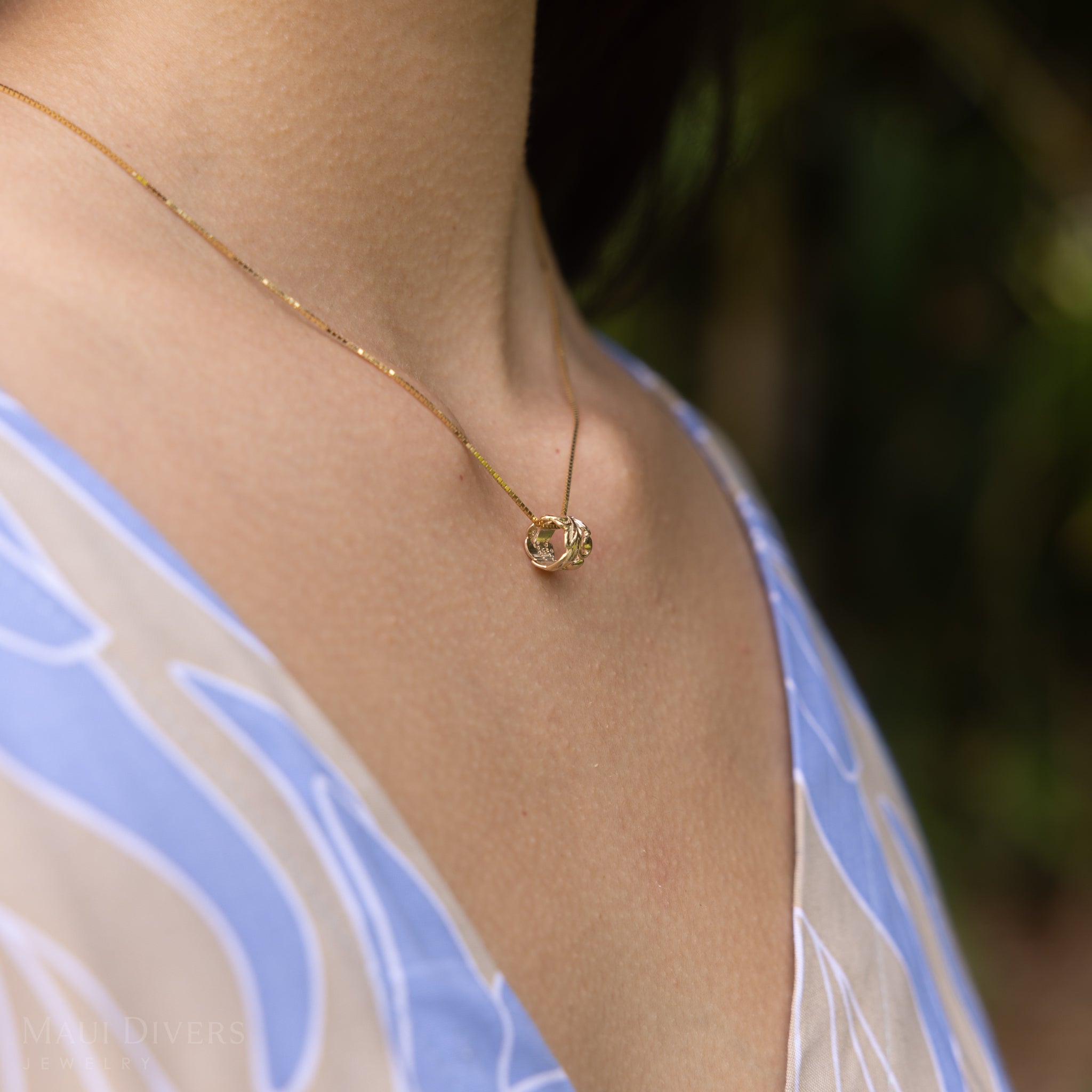 ハワイアン・エアルーム ペンダントには、愛、名誉、尊敬を表すマイレの葉のスクロールがデザインされています。このエレガントなペンダントをお好みのチェーンにスライドさせて。