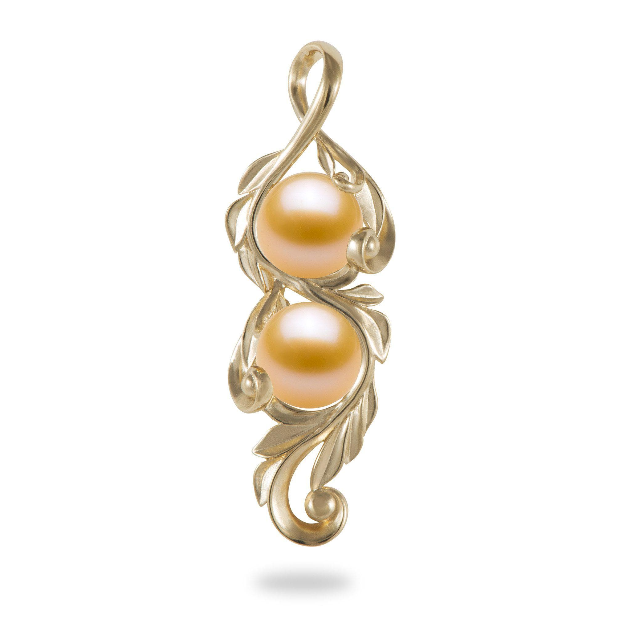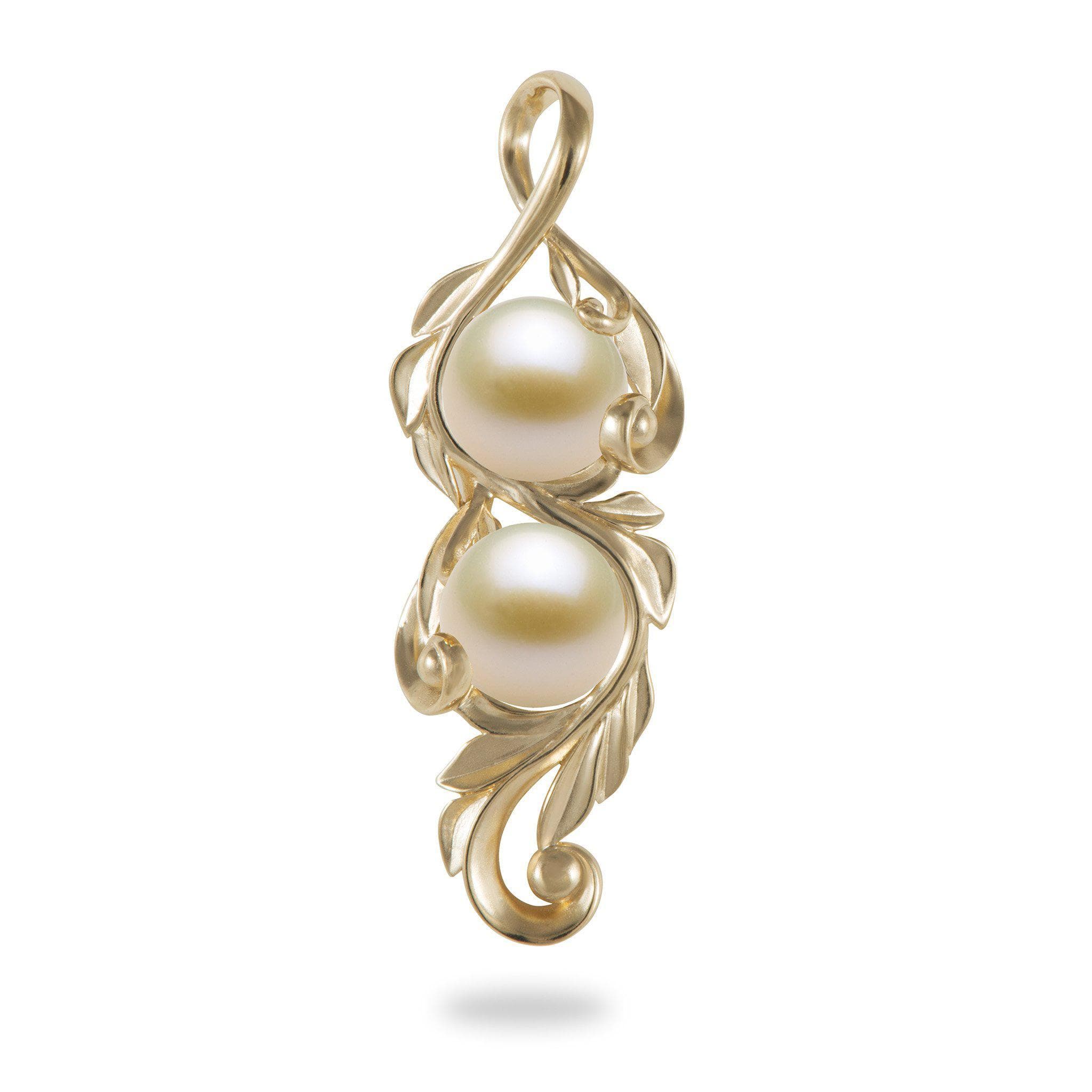 Pick A Pearl Maile Scroll Pendant in Gold - 41mm