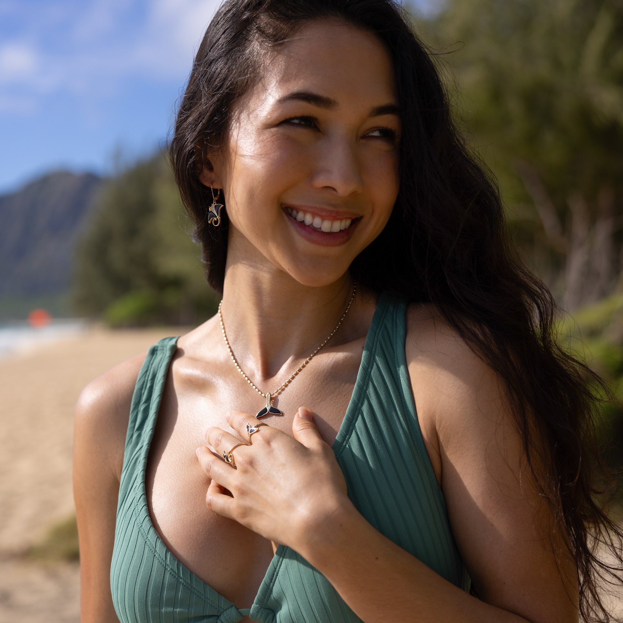 シーライフ・コレクションのマンタ・レイ・ピアスは、ハワイ州の宝石であるブラックコーラルと、きらめく天然ダイヤモンド、そしてゴージャスなハイポリッシュ仕上げが特徴です。ハワイの思い出をこの洗練されたイヤリングで。