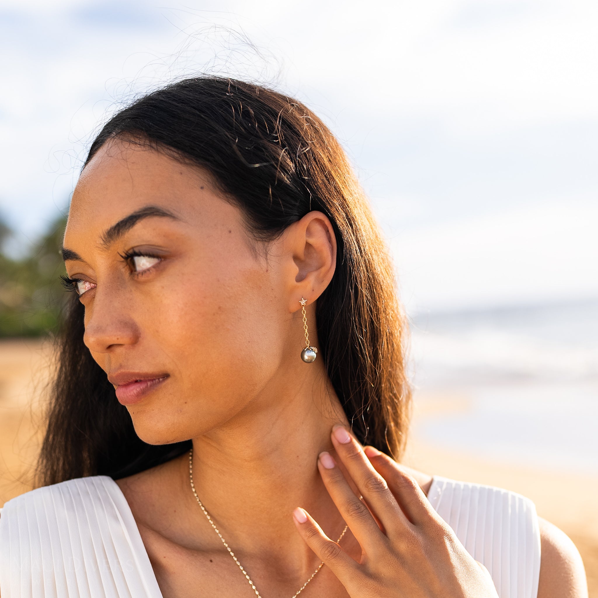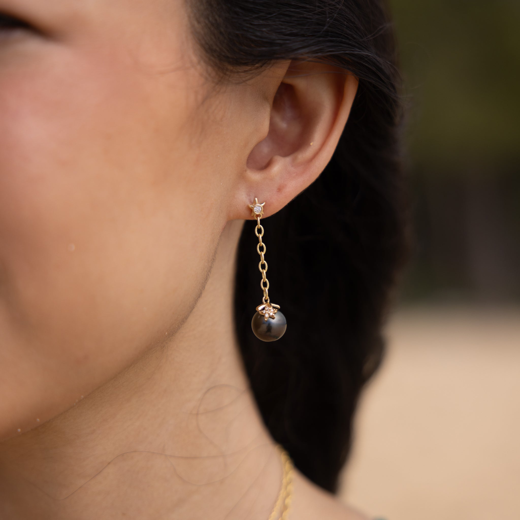 リーフス スターフィッシュ タヒチ黒真珠 ダイヤモンド ゴールド ピアス - 10-11mm