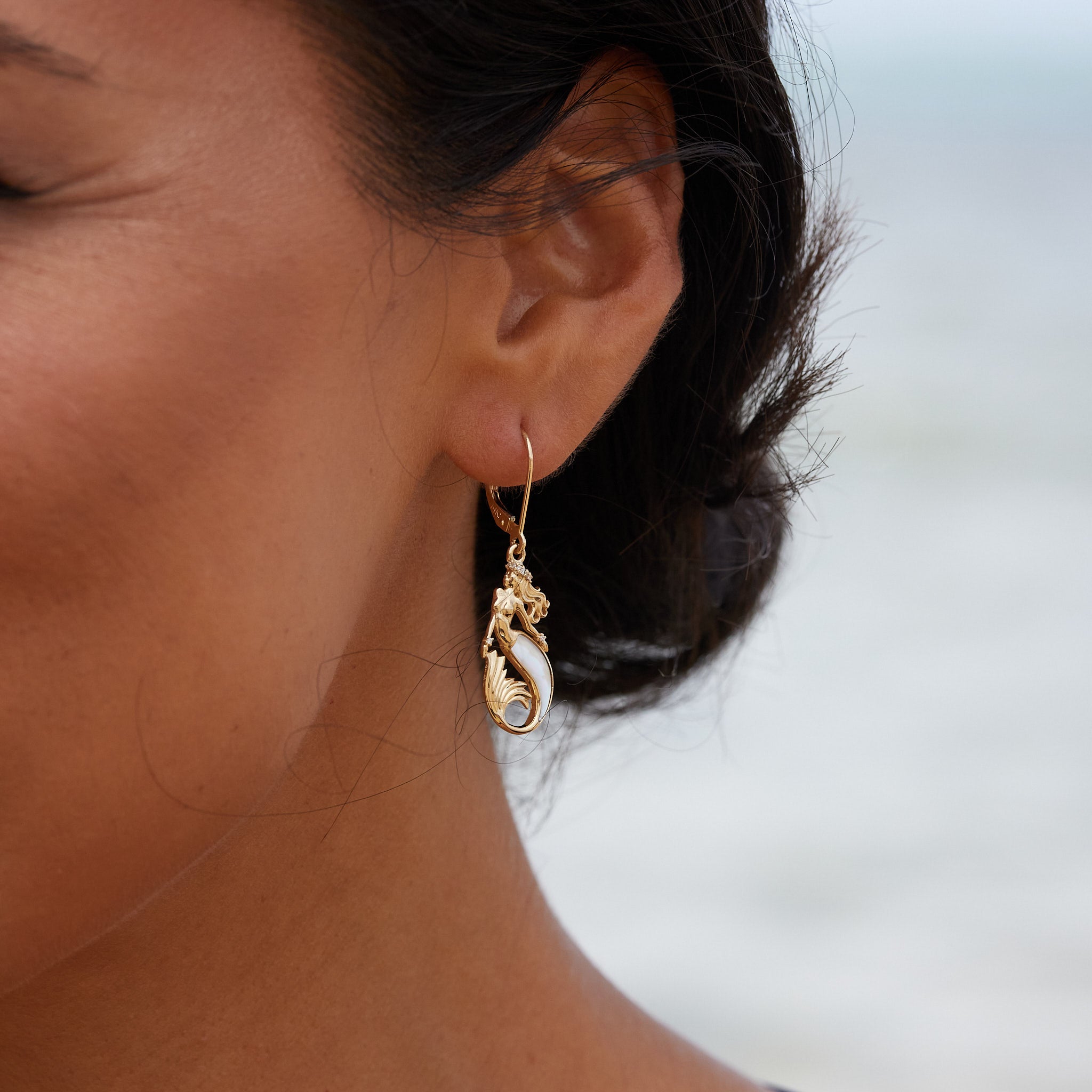 シーライフ マーメイド・マザー・オブ・パール・イヤリング ダイヤモンド ゴールド - 24mm