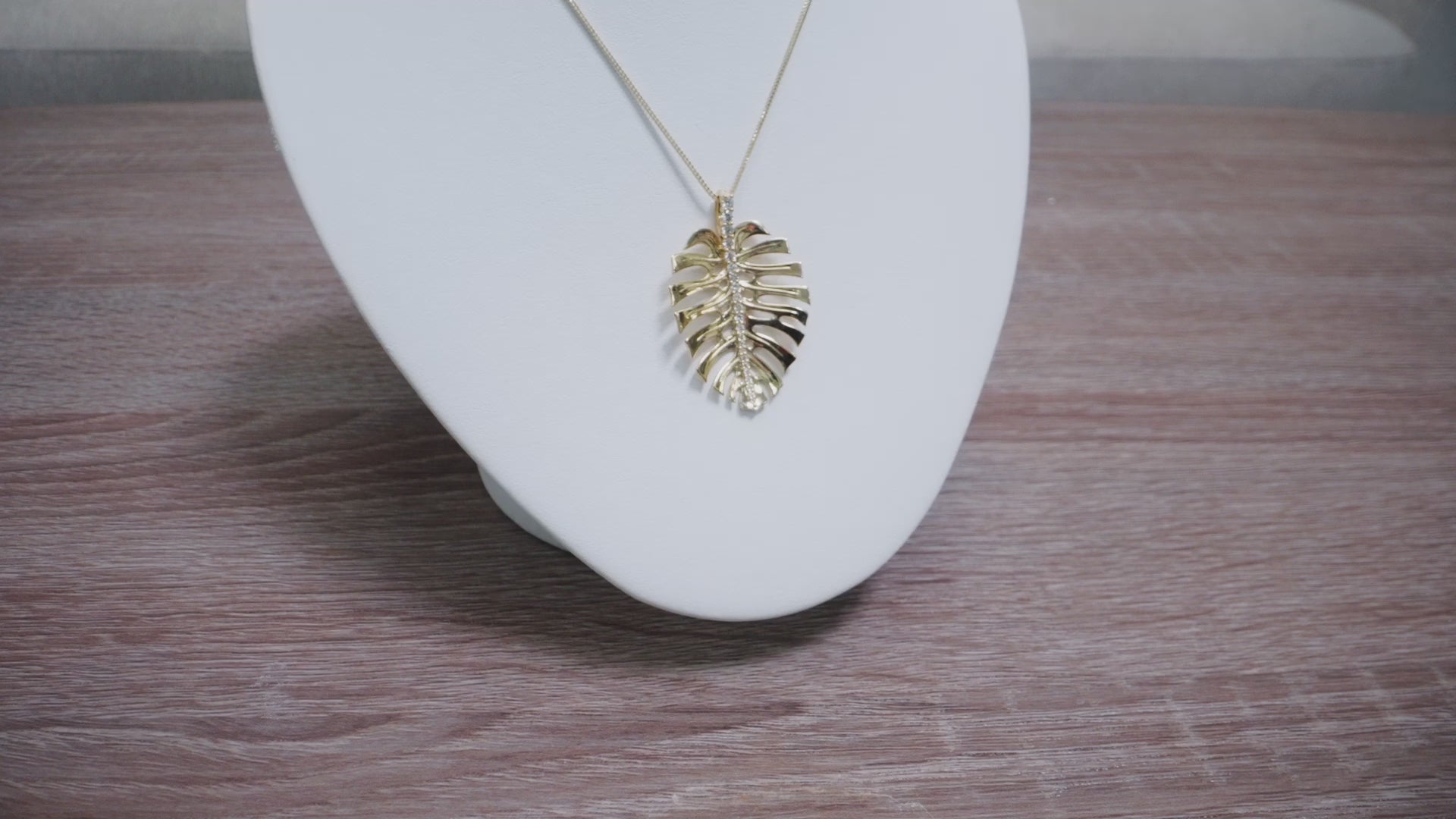 Monstera Pendant in Gold with Diamonds - 35mm